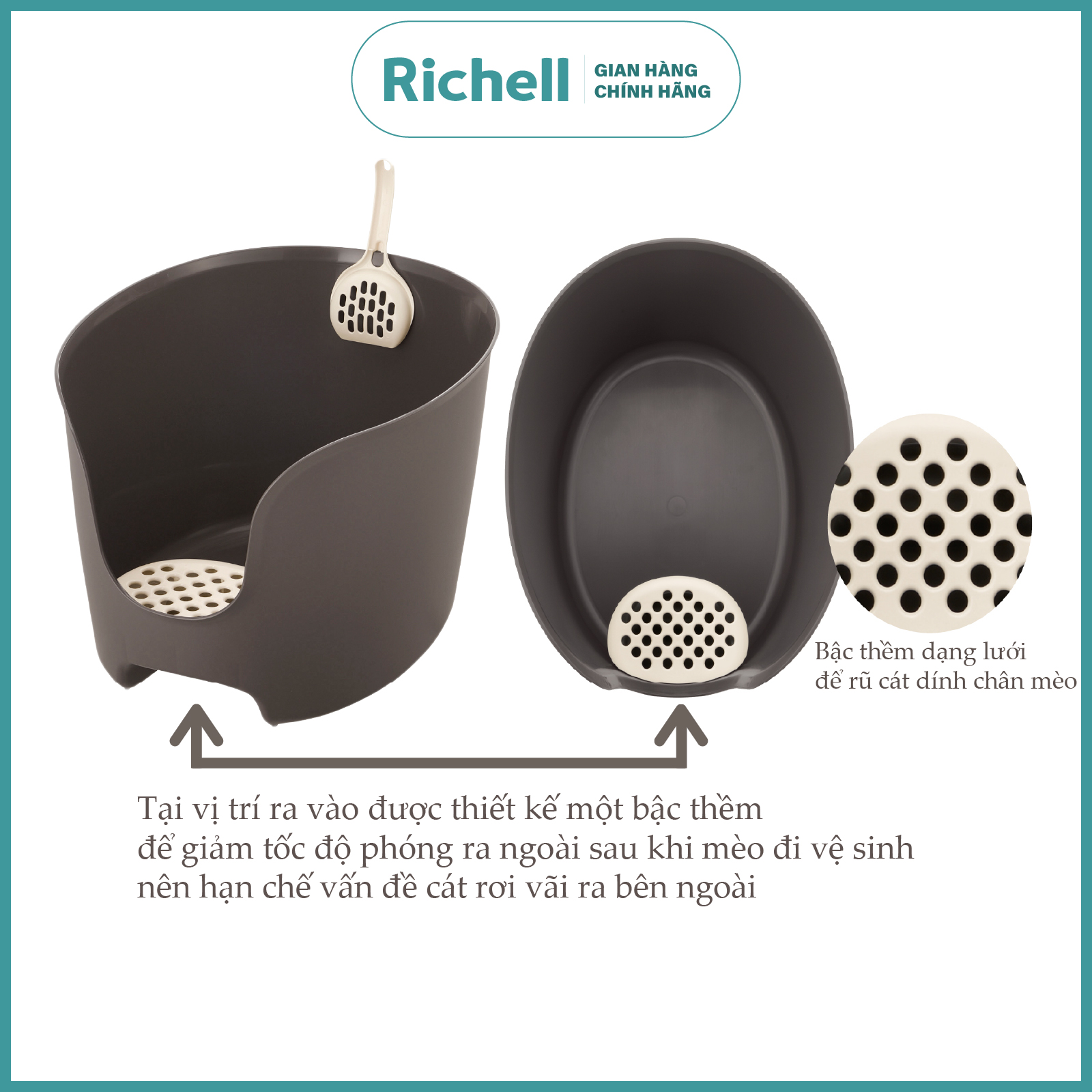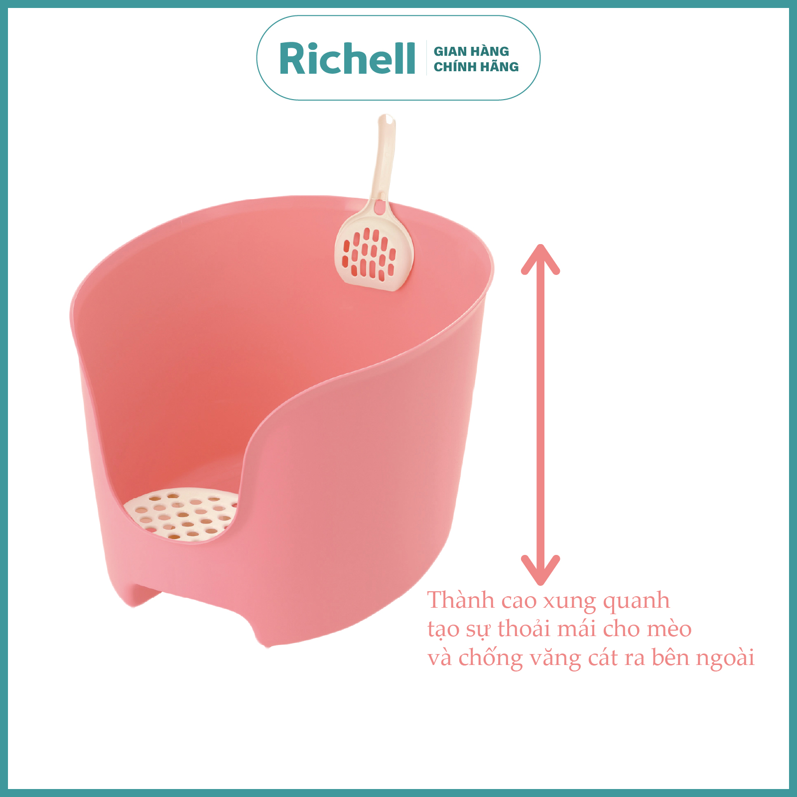 Khay vệ sinh Thành cao Richell Chống văng cát cho Mèo kèm Xẻng