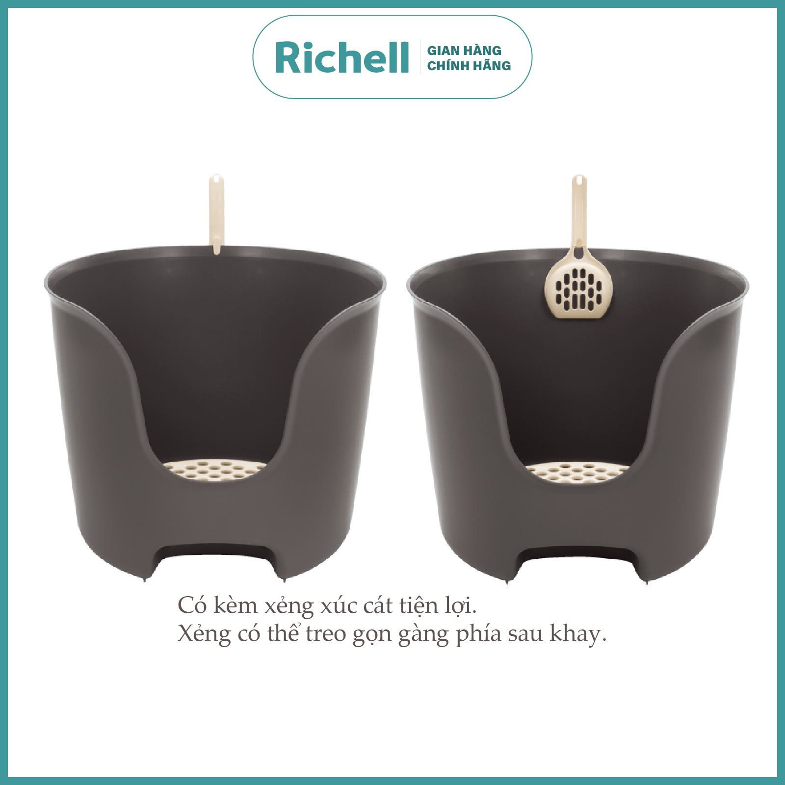 6) Đi kèm xẻng xúc cát tiện lợi. Xẻng có thể treo gọn gàng phía sau khay.