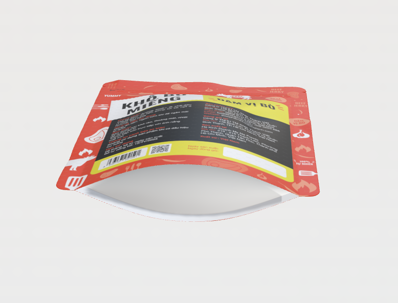 Thành phần: Thịt bò 95%, đường, muối i- ốt, chất điều vị (INS 621), ớt, tiêu, gừng, tỏi, sả, ngũ vị hương, bột nghệ