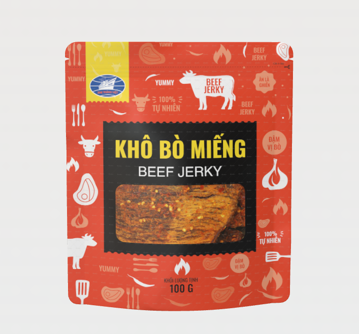 Với sản phẩm tươi sống, trọng lượng thực tế có thể chênh lệch khoảng 10%. Khô bò miếng đậm vị bò. Thành phần: Thịt bò 95%, đường, muối i- ốt, chất điều vị (INS 621),