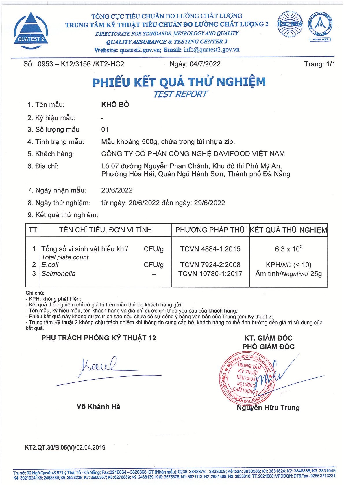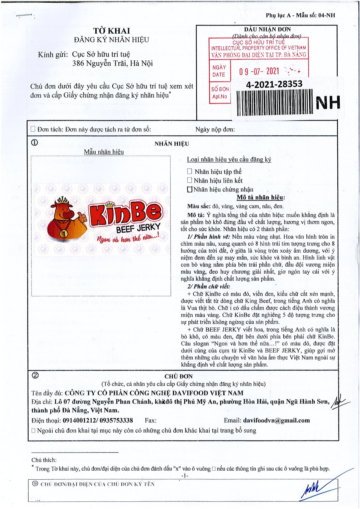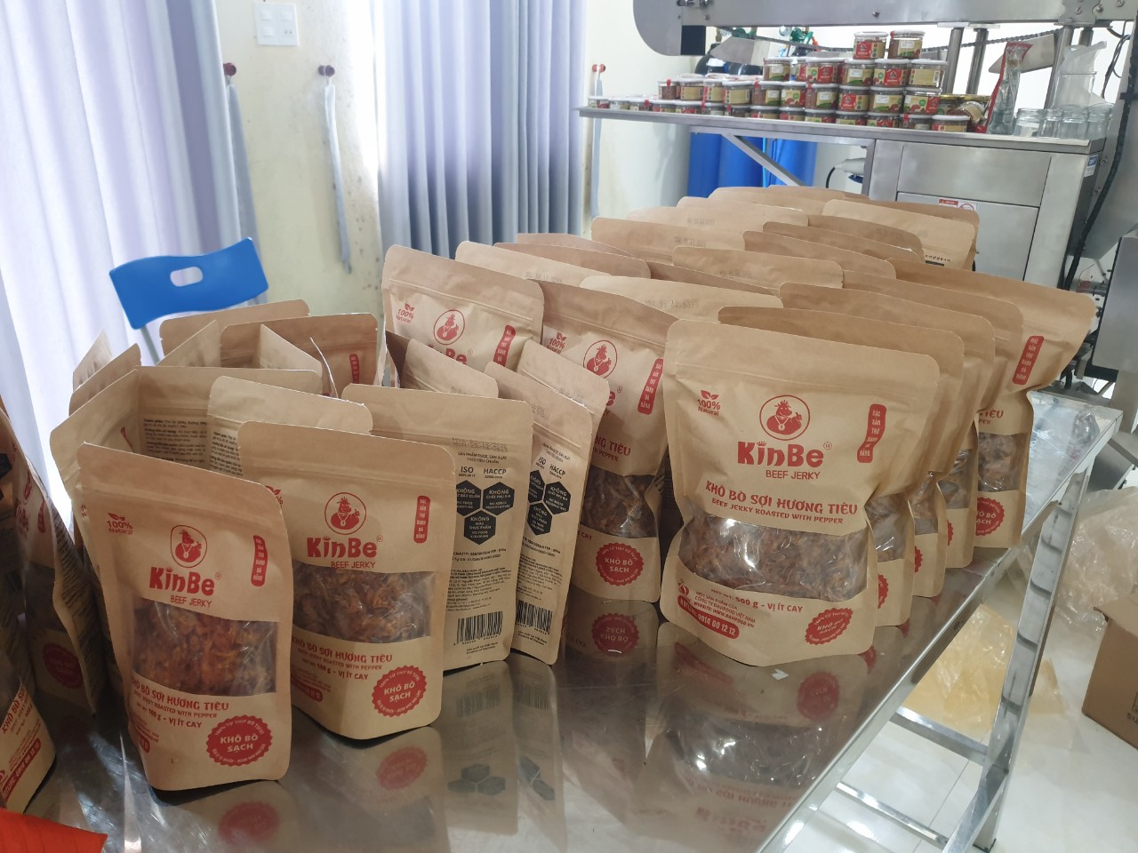 - Khô bò KINBE BEEF JERKY là sản phẩm của Công ty Cổ phần Công nghệ Davifood Việt Nam nghiên cứu và phát triển; được làm từ 100% thịt bò tươi, kết hợp với các loại gia vị hoàn toàn tự nhiên được lựa chọn kỹ lưỡng, trên dây chuyền thiết bị công nghệ hiện đại khép kín, theo tiêu chuẩn HACCP, giữ nguyên hương vị và giá trị dinh dưỡng, an toàn vệ sinh thực phẩm.