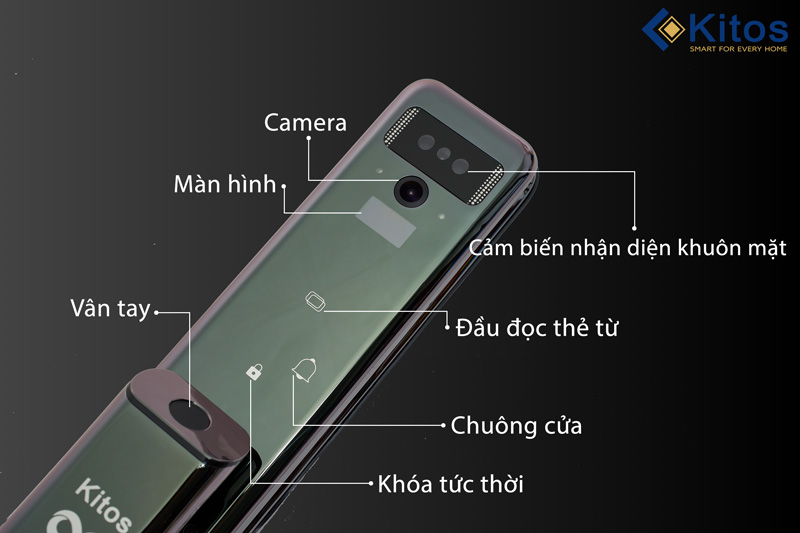 Sản phẩm khóa cửa Kitos Infinity mới nhất được tích hợp đầy đủ 5 chức năng mở khóa: nhận diện khuôn mặt 3D, vân tay, thẻ từ, mã số, chìa cơ.