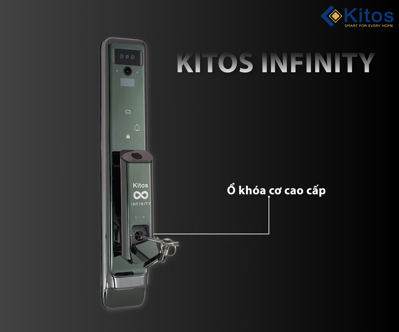 Khoá cửa vân tay Kitos Infinity vừa ra mắt đã cho thấy những bước chuyển mình đáng kể so với các dòng sản phẩm trước đó. Kitos Infinity được chuyên dùng lắp đặt cho hệ cửa gỗ, cửa thép chung cư, cửa biệt thự, cửa đại sảnh với màu Titan sáng bóng, sang trọng phù hợp với hầu hết các màu cửa.