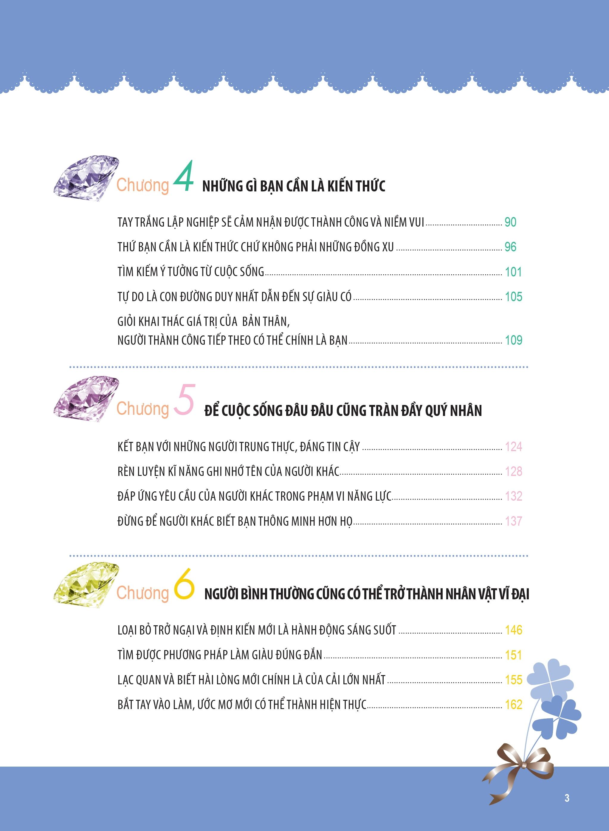 Giàu có luôn là điều con người ta hướng đến, bởi tiền bạc đã trở thành thước đo cơ bản nhất của xã hội ngày nay. Nhưng cách thức để dùng sự giàu có biến cuộc sống bạn tươi đẹp hơn thì không phải ai cũng thành công. Cuốn sách chỉ ra 3 phân đoạn bạn cần đạt được nếu muốn có một cuộc sống tươi đẹp: