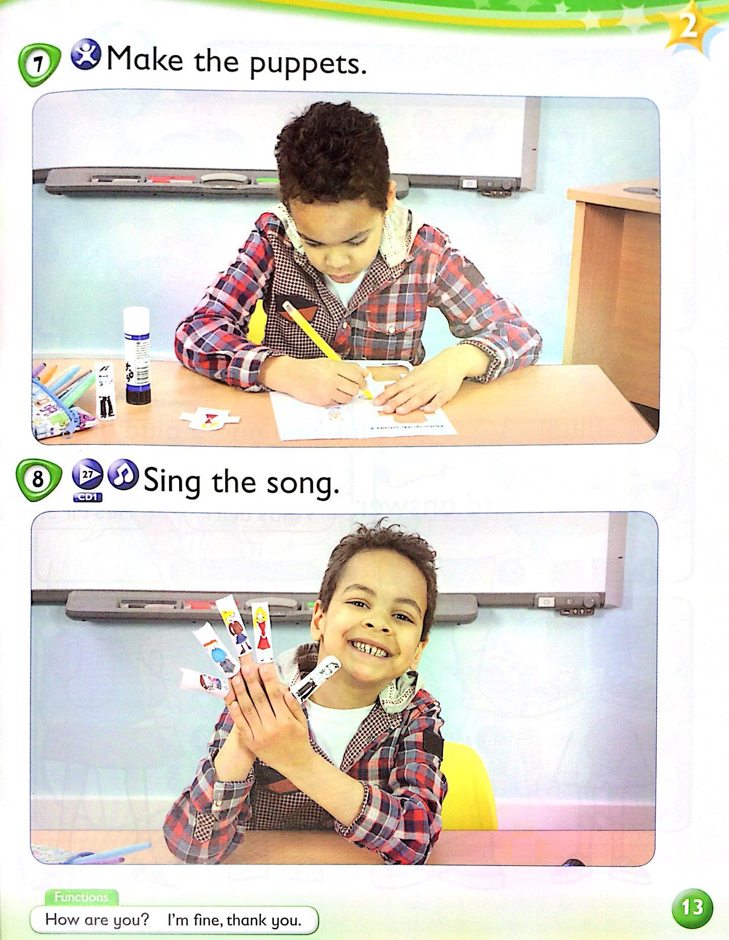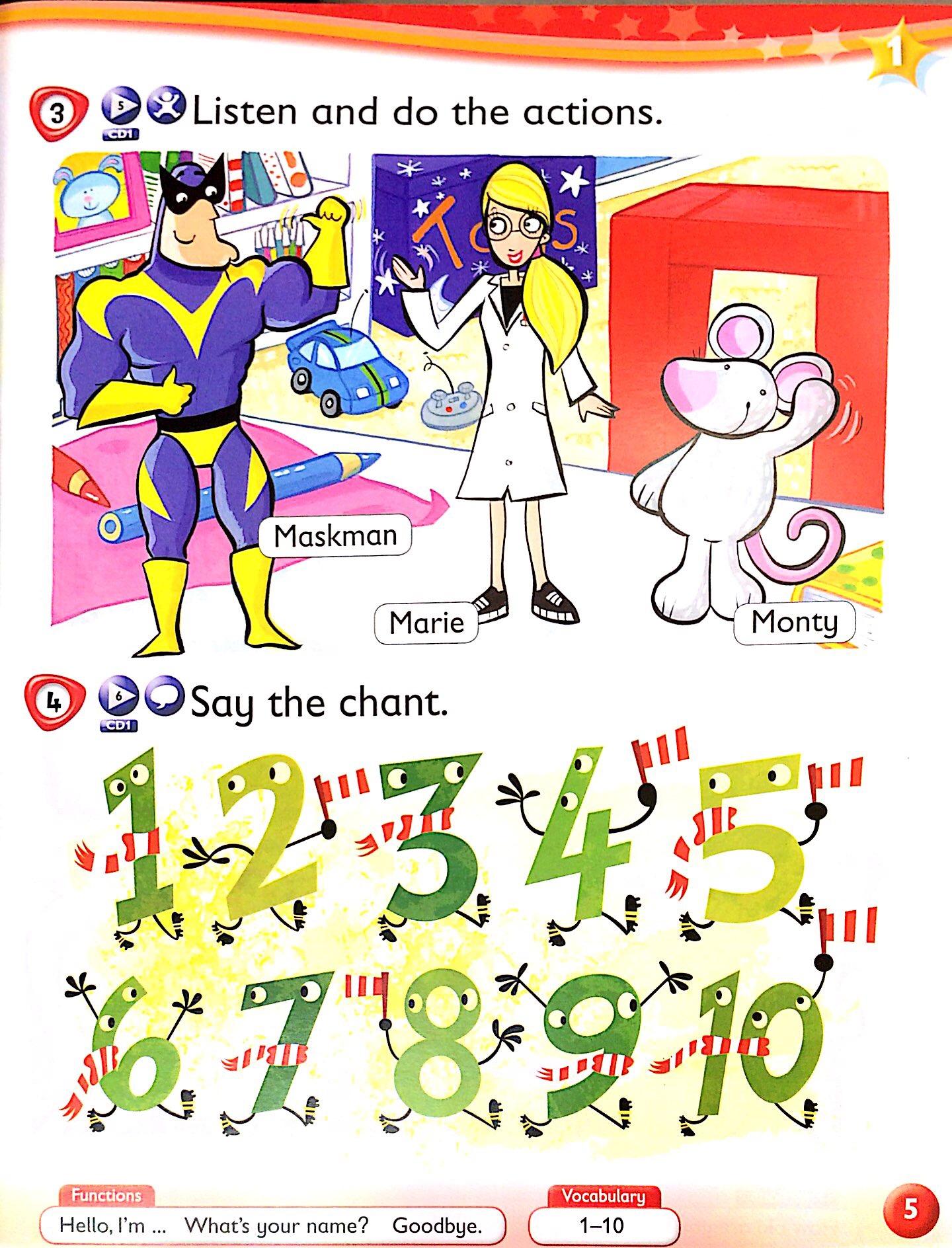 Kid's Box Starter - Unit 1 - Hello - 1 - Listen and point. With comic dialogue box.