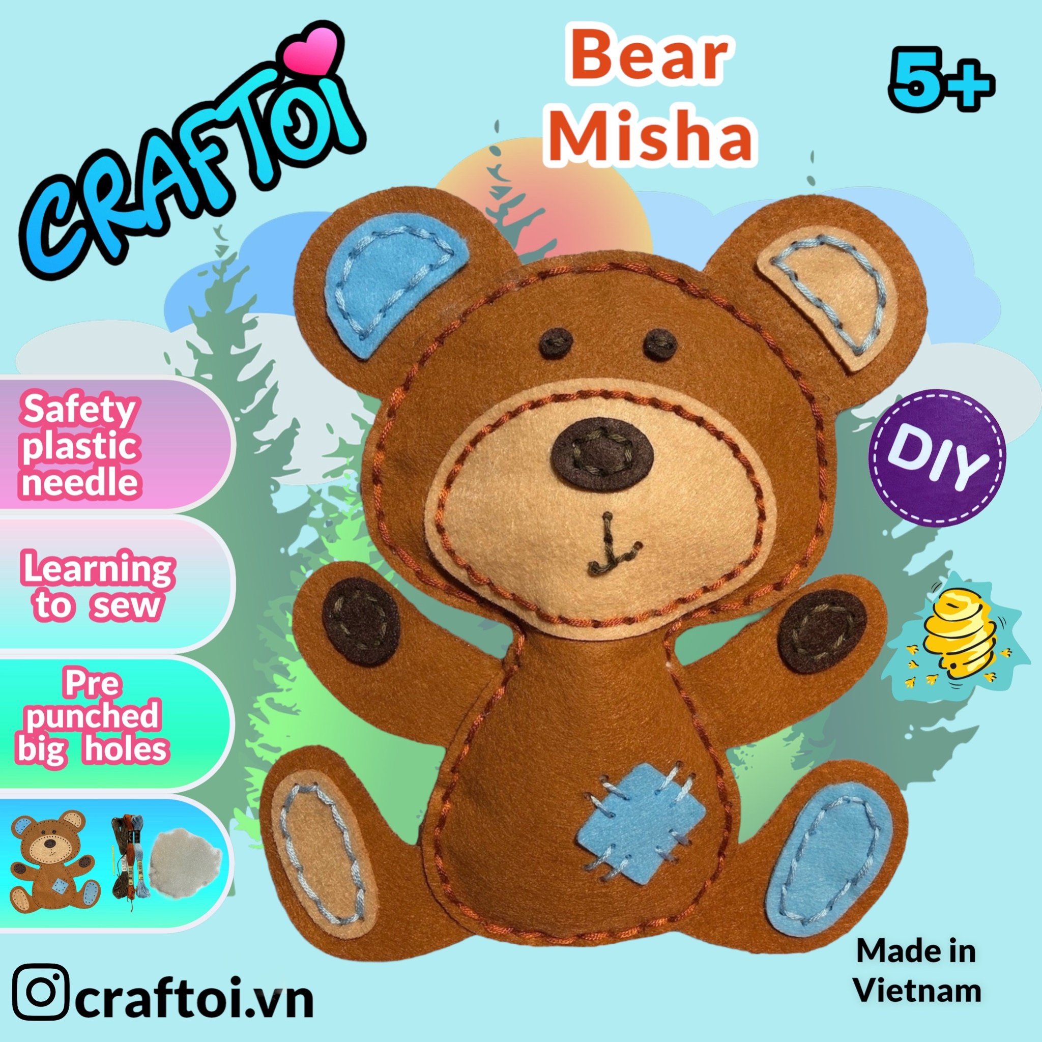 ✨KIM NHỰA Bộ Thủ Công Trẻ Tự Làm Thú Bông 5+ BEAR MISHA Craftoi Felt Sewing toy prepunched holes plastic needle