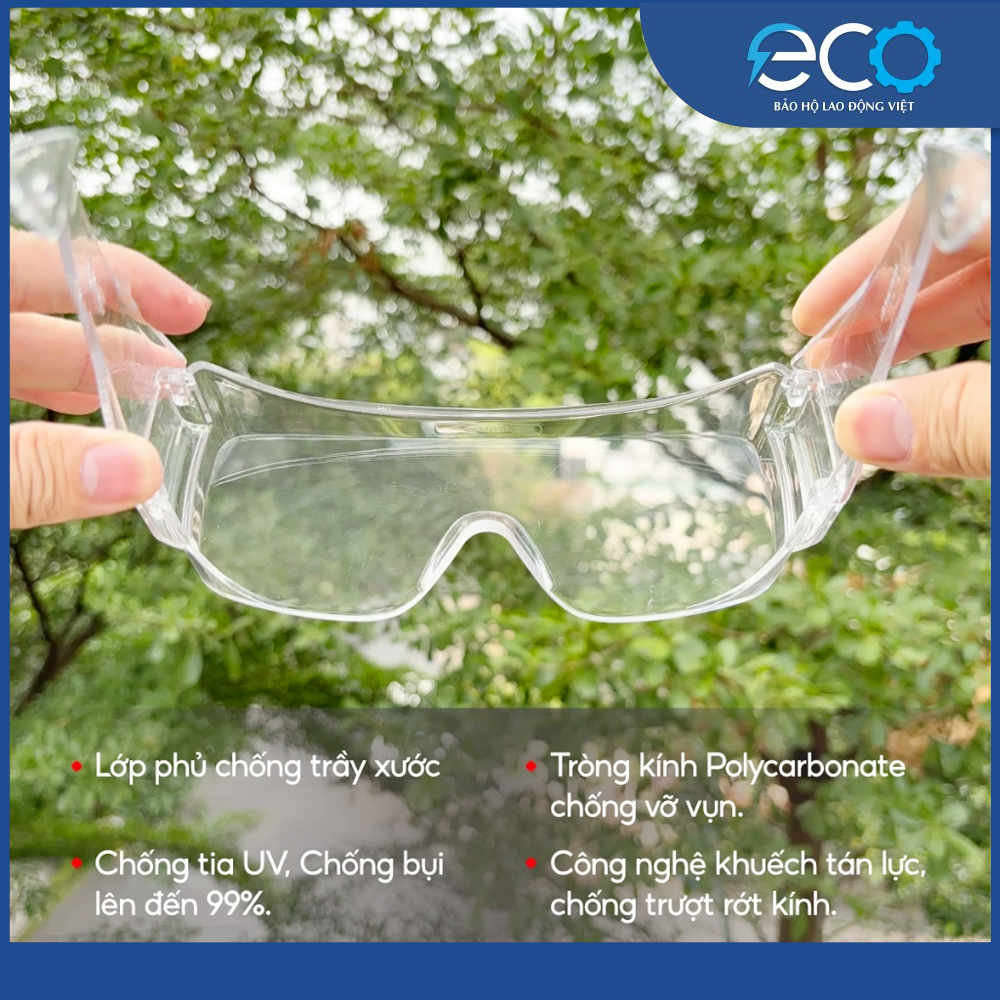 - Bảo vệ mắt khỏi bụi mịn, hóa chất, tia UV, vật bắn