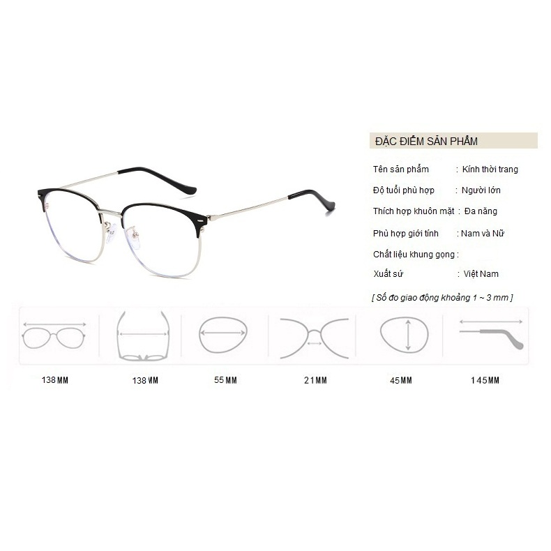 - Gọng kính bằng chất liệu nhựa cao cấp, bền và tạo cảm giác thoải mái cho người sử dụng. Có thể thay tròng 0 độ/cận/viễn/loạn theo nhu cầu sử dụng. - Dàng Unisex phù