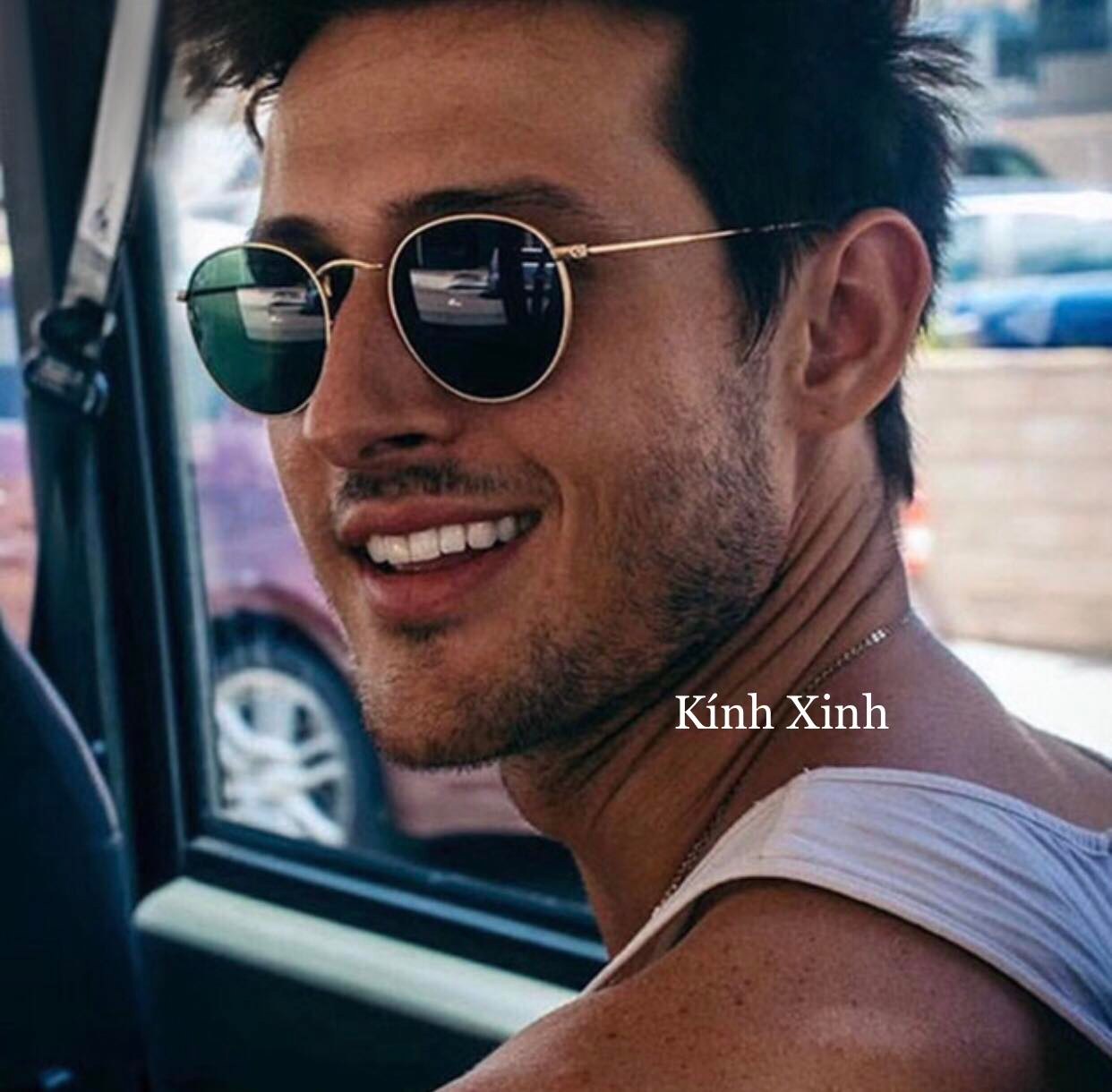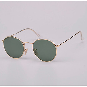 ✨Kính râm Mắt Tròn Tròng Thủy Tinh Cao Cấp Gọng Kim Loại Chống Nắng UV