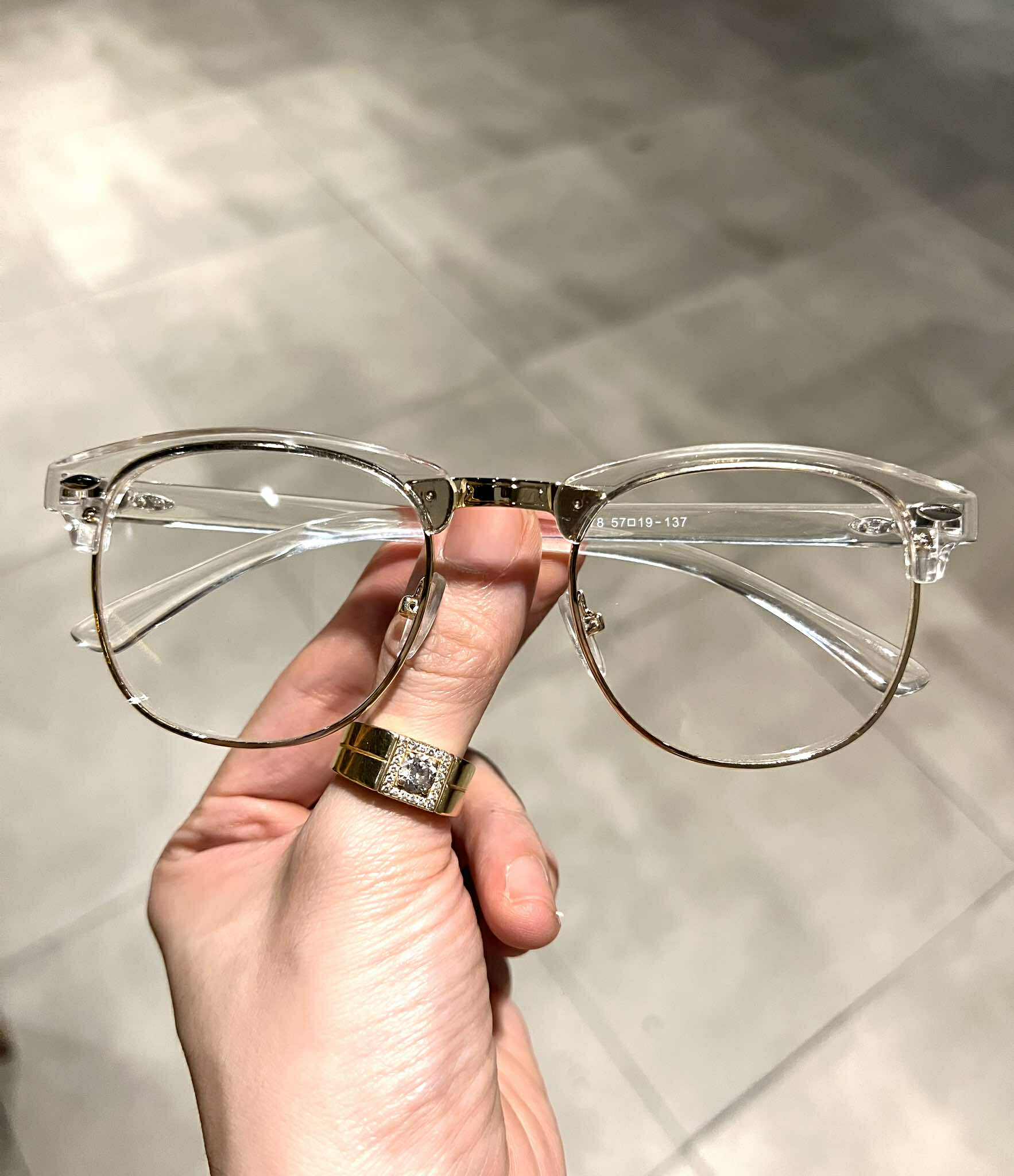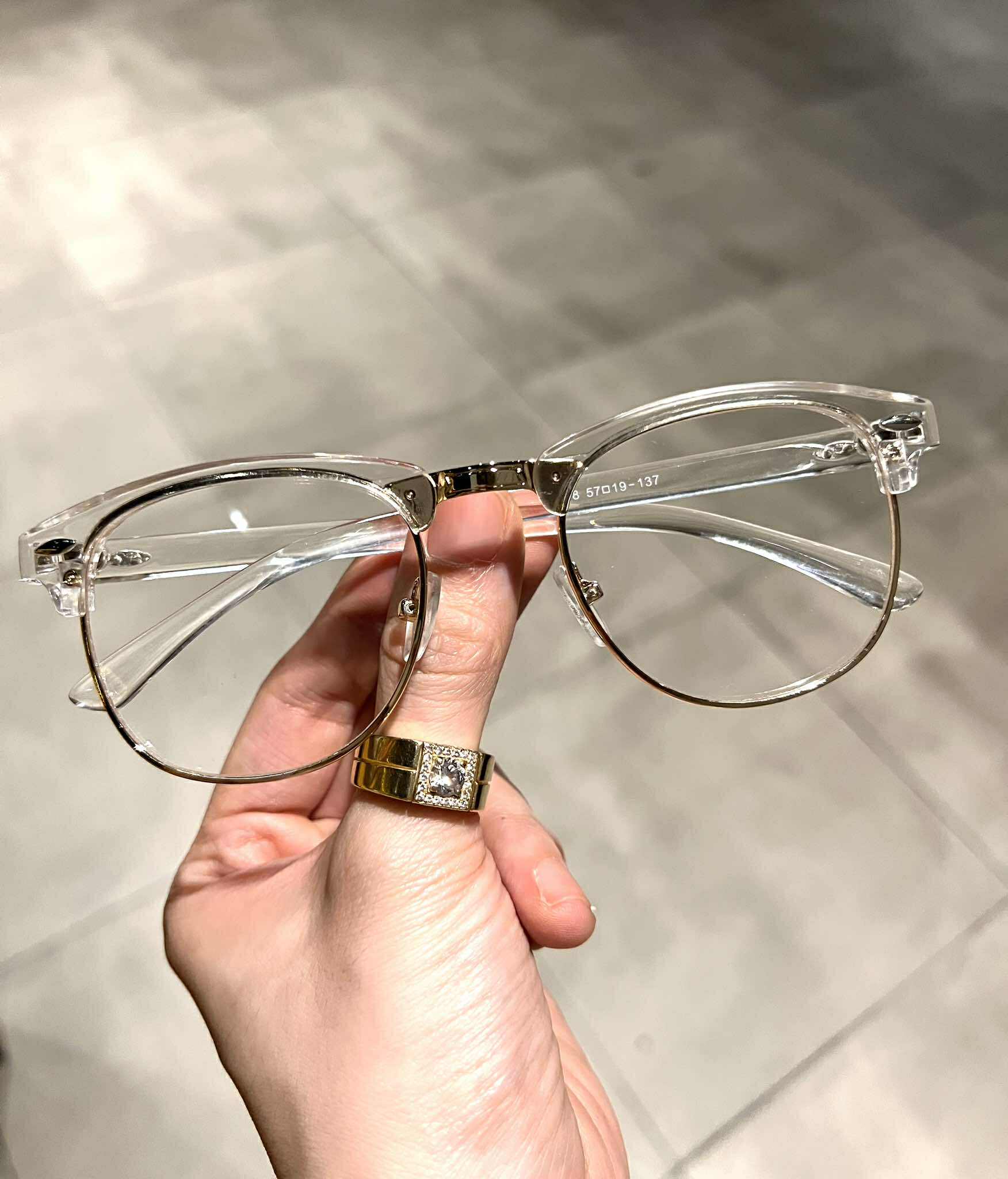 Kính Trong suốt dáng Club nửa viền unisex cho nam nữ - Giới tính: Nam và Nữ - Kiểu dáng: Freeform - Chất liệu: Nhựa - Tặng hộp đựng và khăn lau kèm theo -