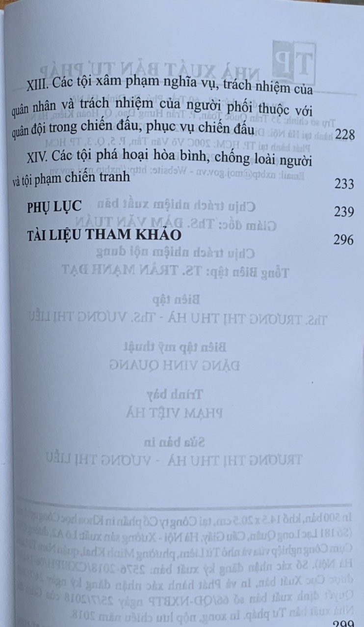 Tên sách : Trách nhiệm hình sự, hình phạt và các biện pháp hình sự khác Tác giả: GS.TS. Nguyễn Ngọc Hòa Khổ sách: 16x24 Bìa: Mềm Giá bán: 220,000 Một trong hai nội dung