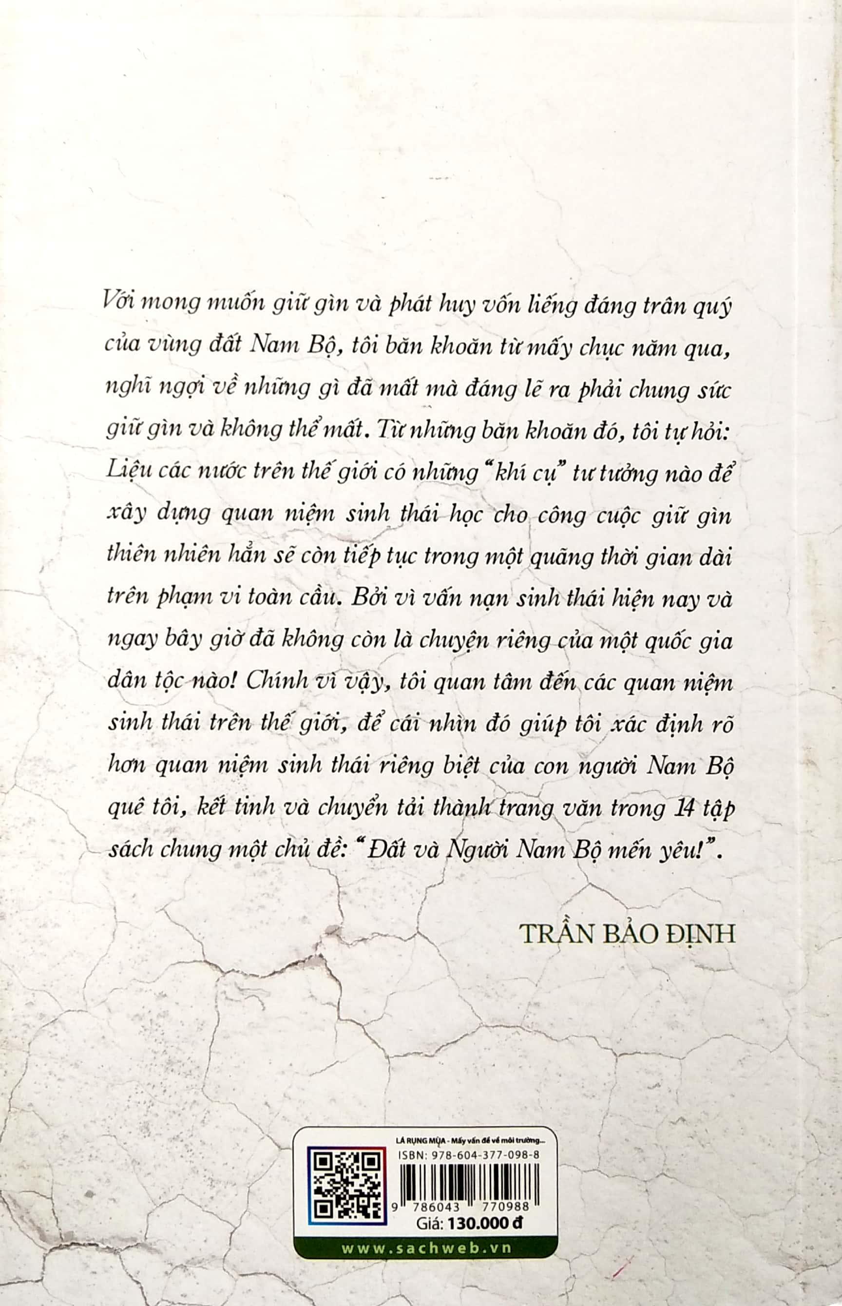 Chính thế, tập sách này có thể xem như trang viết truyền cảm hứng (khơi dậy tình yêu nước thương nòi, tình yêu thương con người vạn vật nói chung) hơn là tập chuyên khảo hàn lâm. Từ mảnh đất quê, Trần Bảo Định nhìn khắp chốn, kết hợp đối sánh để rạng tỏ bản diện quê hương. Quan niệm "sinh thái học tầng sâu" của tác giả rõ ràng xuất phát từ chính cuộc sống và lối "minh triết" sẵn có của người bình dân Nam Bộ. Đáng quý hơn cả ở tập sách này là tác giả đã bám chặt lấy quê hương để khai thác quan niệm sinh thái của người dân đồng bằng sông Cửu Long và ông góp phần chuyển tải quan niệm sinh thái nhân văn riêng biệt của người bình dân Nam Bộ hòa vào mối quan tâm chung của nhân loại về vấn nạn môi trường sinh thái hôm nay.