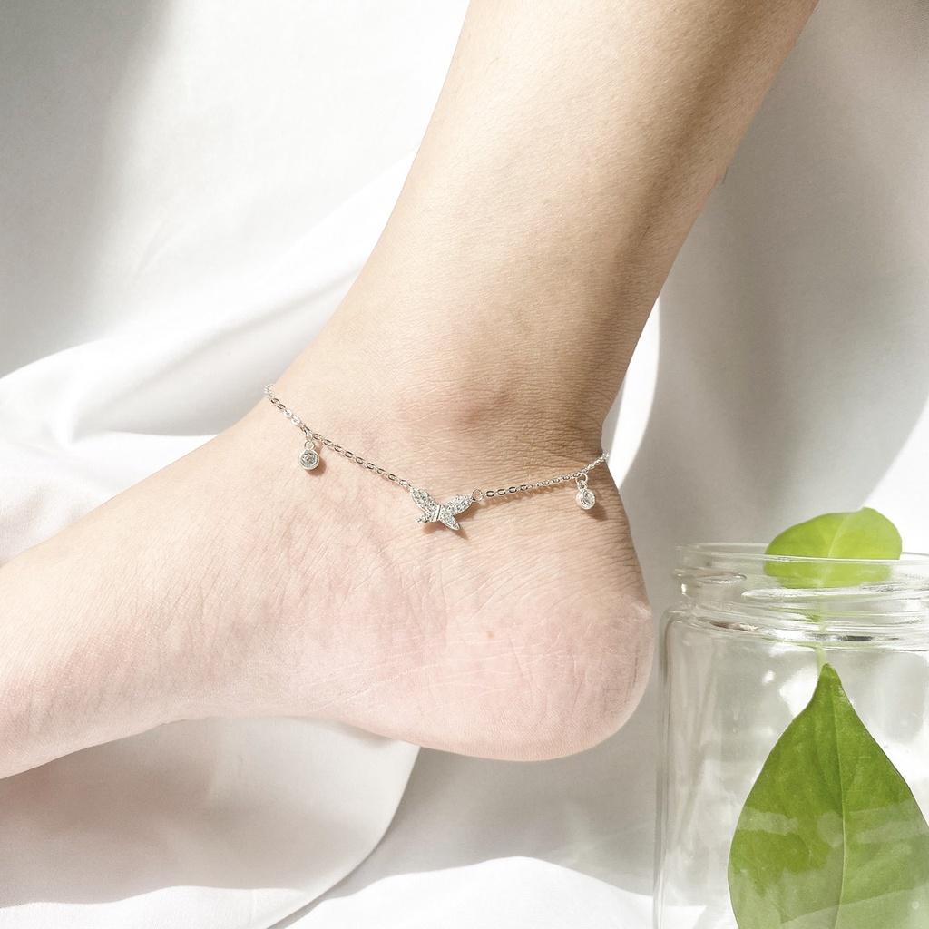 Lắc chân bạc 925 butterfly treo tiny đính pha lê xinh xắn dễ thương Dế Bạc – LC4392