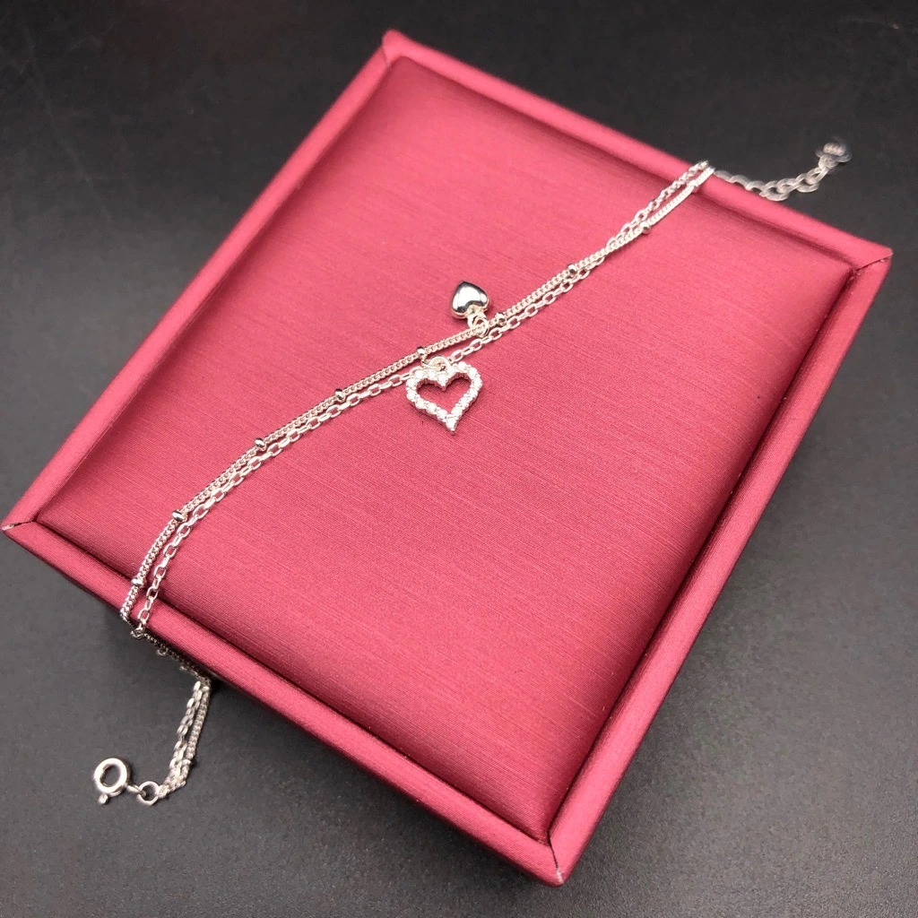 Lắc Chân Nữ Bạc 925 Dây Kép Trái Tim Bạc Hiểu Minh LC240