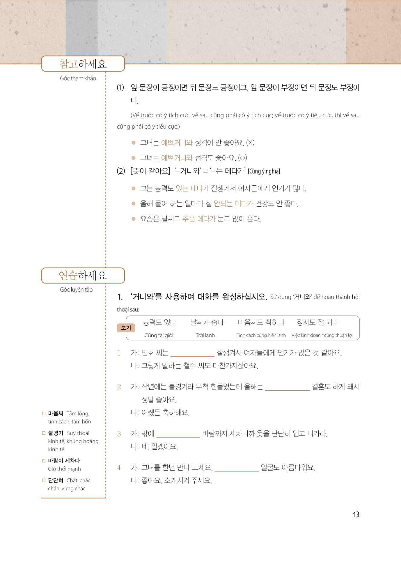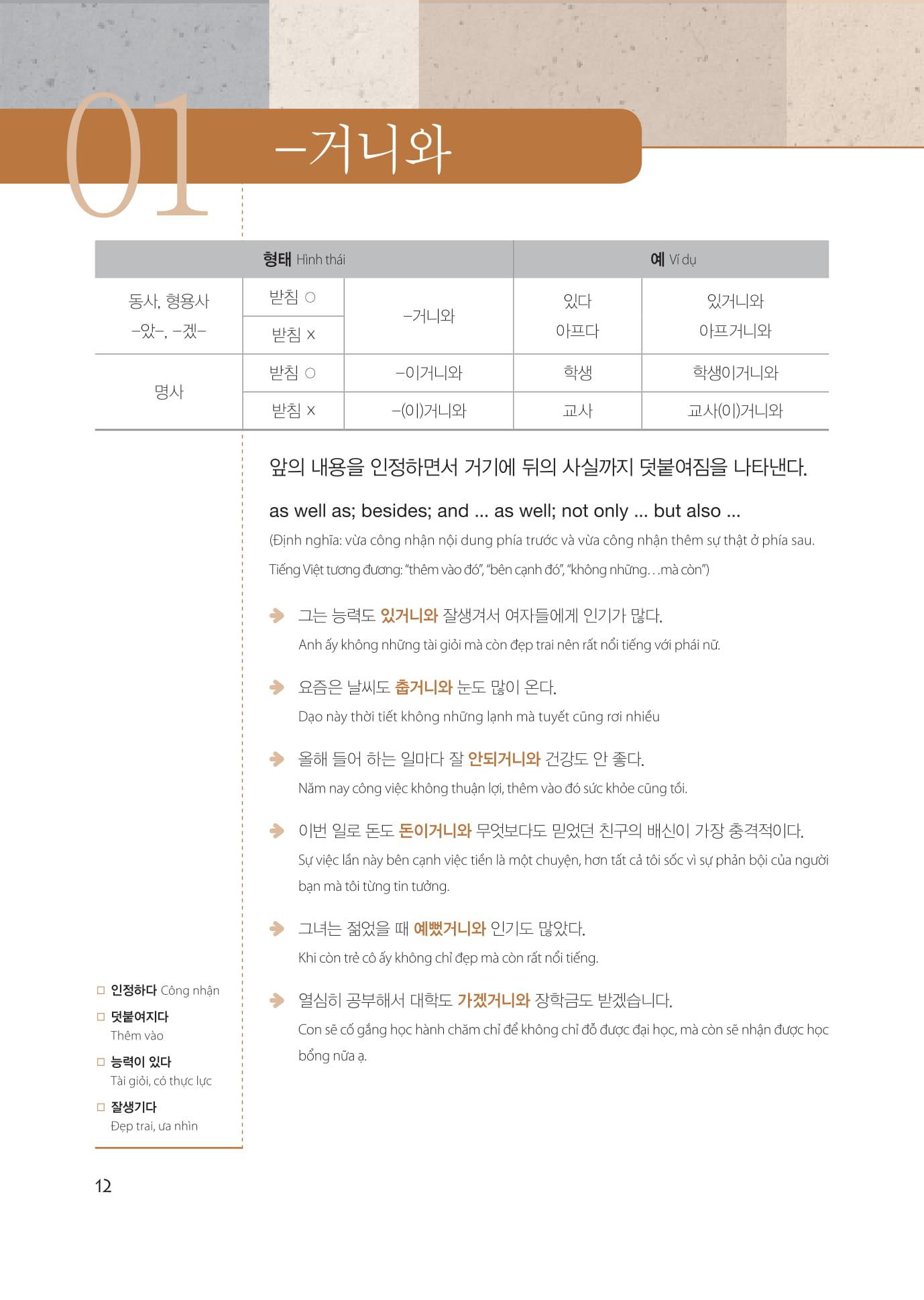 Cung cấp kho từ vựng, ví dụ đa dạng, cũng như các dạng bài tập điển hình giúp người học làm quen chính xác ý nghĩa và cách sử dụng tiếng Hàn