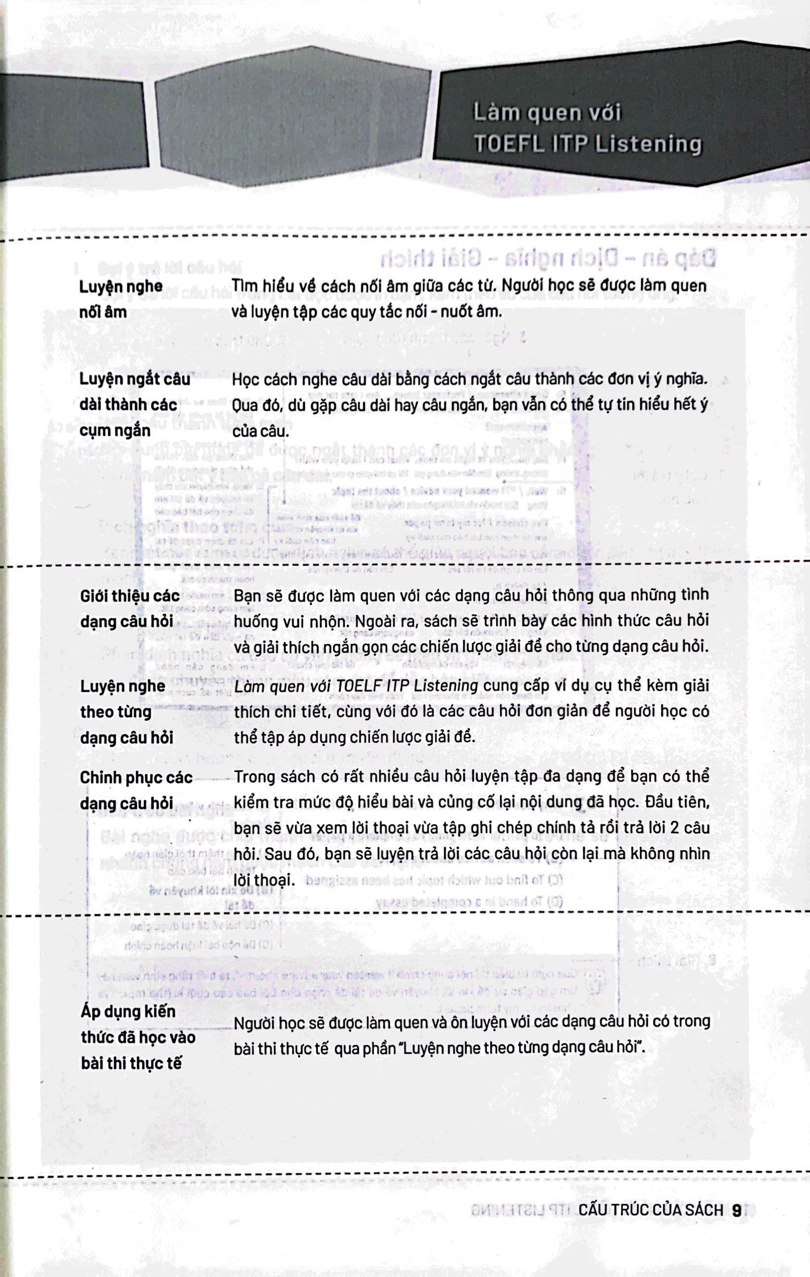 Làm quen với TOEFL ITP Listening đưa ra lộ trình học tập từng bước cho phép người học xây dựng các kỹ năng nghe cơ bản để phục vụ bài thi TOEFL ITP một cách
