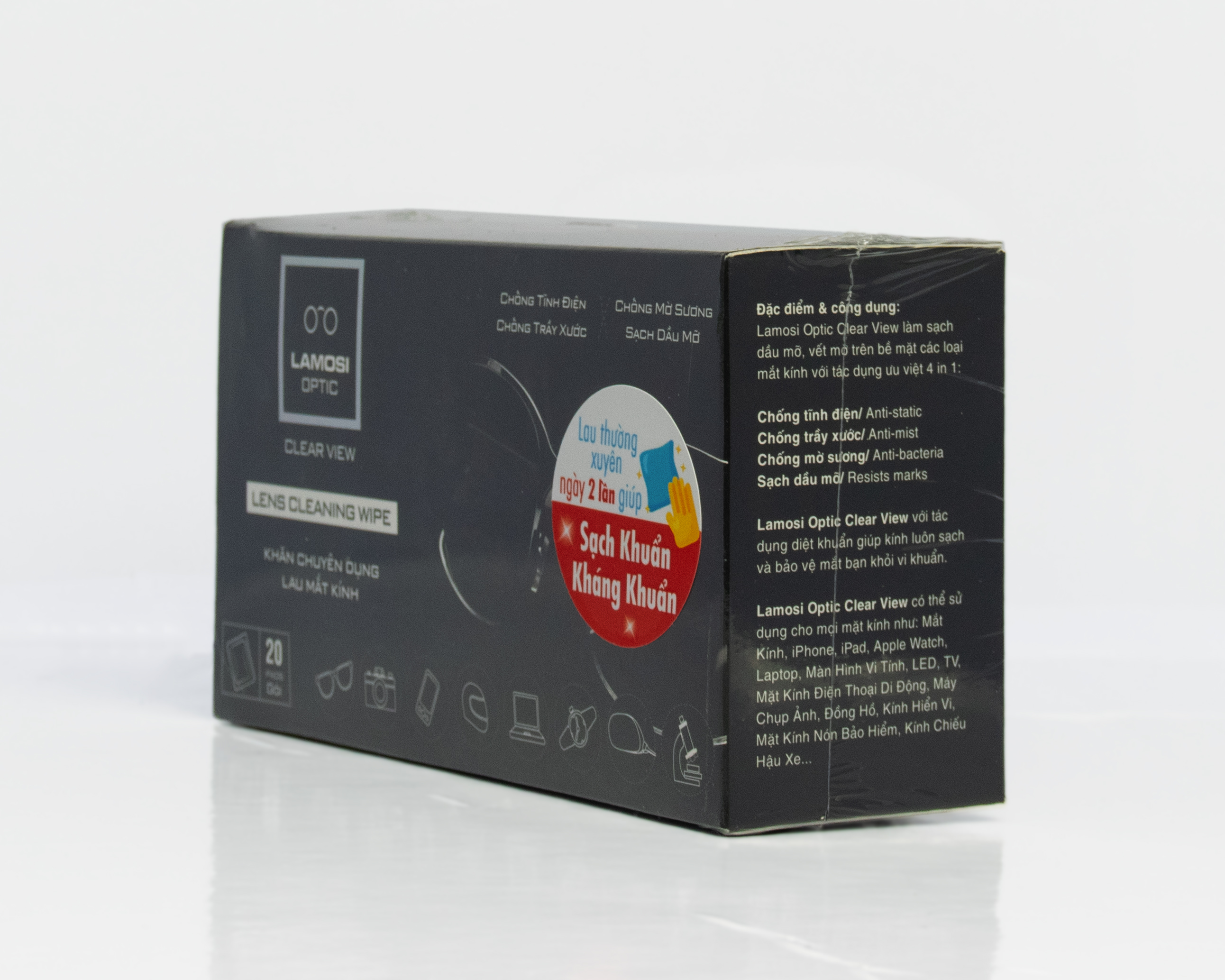 LAMOSI OPTIC – PERFECT VIEW Có thể sử dụng cho các loại mặt kính như: mắt kính, màn hình máy tính, LED, LCD, TV, mặt kính điện thoại di động, máy chụp ảnh, đồng hồ, kính hiển vi, mặt kính nón bảo hiểm, kính chiếu hậu xe... .