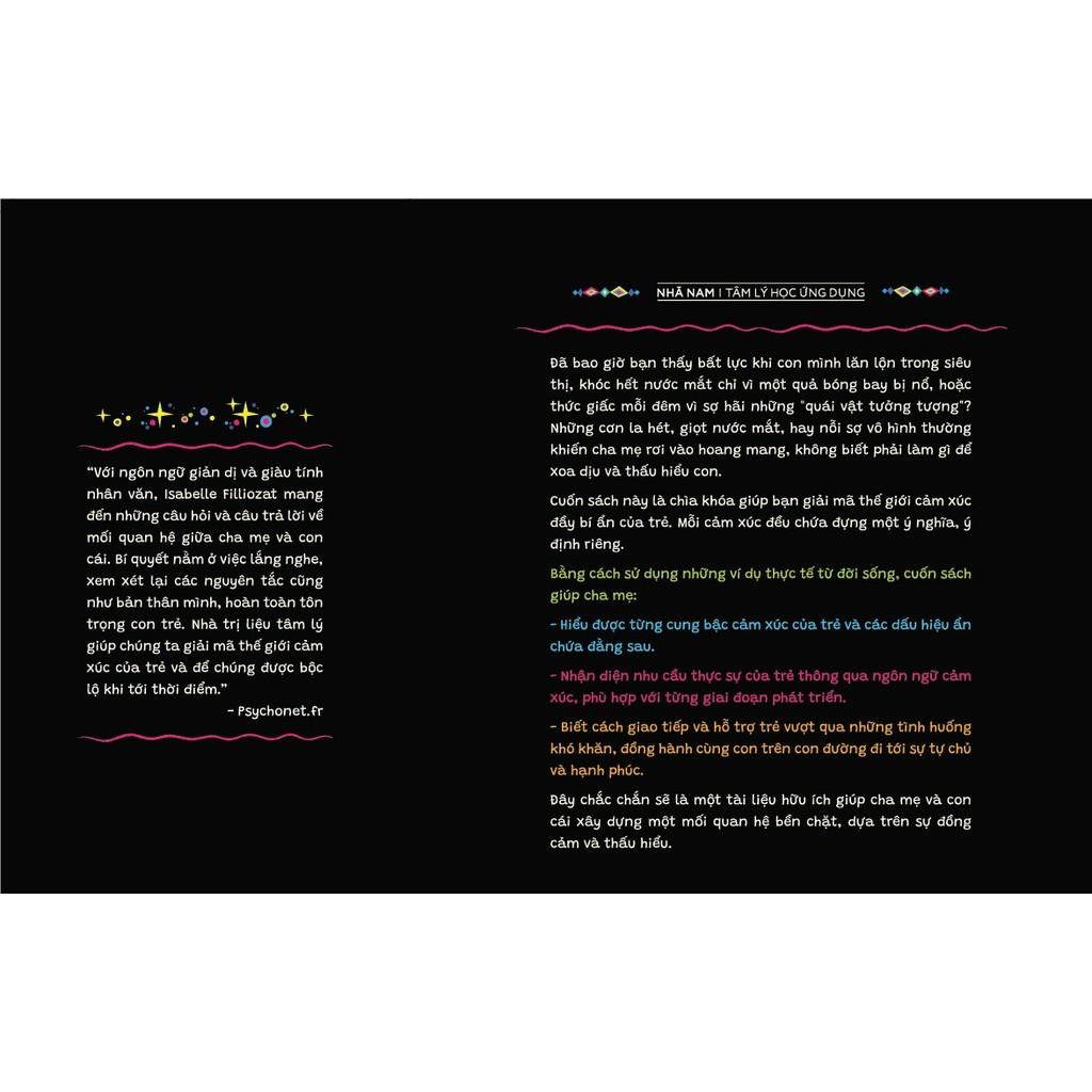 Đã bao giờ bạn thấy bất lực khi con mình lăn lộn trong siêu thị, khóc hết nước mắt chỉ vì một quả bóng bay bị nổ, hoặc thức giấc mỗi đêm vì sợ hãi những "quái vật tưởng tượng"? Những cơn la hét, giọt nước mắt, hay nỗi sợ vô hình thường khiến cha mẹ rơi vào hoang mang, không biết phải làm gì để xoa dịu và thấu hiểu con. Cuốn sách này là chìa khóa giúp bạn giải mã thế giới cảm xúc đầy bí ẩn của trẻ. Mỗi cảm xúc đều chứa đựng một ý nghĩa, ý định riêng. Bằng cách sử dụng những ví dụ thực tế từ đời sống, cuốn sách giúp cha mẹ: - Hiểu được từng cung bậc cảm xúc của trẻ và các dấu hiệu ẩn chứa đằng sau. - Nhận diện nhu cầu thực sự của trẻ thông qua ngôn ngữ cảm xúc, phù hợp với từng giai đoạn phát triển. - Biết cách giao tiếp và hỗ trợ trẻ vượt qua những tình huống khó khăn, đồng hành cùng con trên con đường đi tới sự tự chủ và hạnh phúc. - Đây chắc chắn sẽ là một tài liệu hữu ích giúp cha mẹ và con cái xây dựng một mối quan hệ bền chặt, dựa trên sự đồng cảm và thấu hiểu