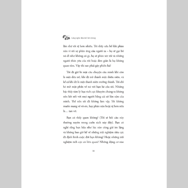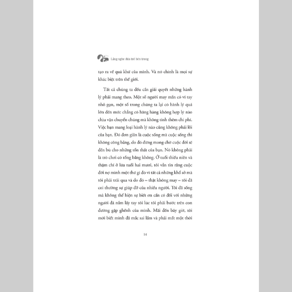 Và những tổn thương ấy đều không có vết sẹo nào chảy máu cả. Dẫu vậy nó vẫn đề lại trong tâm trí mỗi người một nét vẽ nghệch ngoạc. Cuốn sách “Lắng nghe đứa trẻ bên trong bạn” sẽ giúp bạn thấu hiểu cảm xúc, quay về với chính mình để yêu thương và chữa lành. Cuốn sách nhấn mạnh giá trị thực sự của bản thân bạn, học hỏi những kỹ năng để trở nên tự tin, cải thiện các mối quan hệ và cởi bỏ sự non nớt về mặc cảm xúc. Cuộc đời này là của bạn, vì thế đừng cầm bản đồ của người khác để dò đường đi của mình. Bạn có quyền quyết định cách bạn muốn sống. Hãy tìm ra sự can đảm của mình. Hãy sống một cách đích thực. Hãy bảo vệ bản thân và những gì quan trọng với bạn. Hãy phá kén, tỏa sáng theo cách riêng của mình. Khi chúng ta hành động dựa trên tiền đề của nhận thức và hành động dựa trên những giá trị tốt nhất của bản thân mình (thay vì nỗi sợ hãi, lo lắng và thiếu sót), chúng ta sẽ làm chủ vận mệnh của mình. Bởi chúng ta có quyền kiểm soát nó.