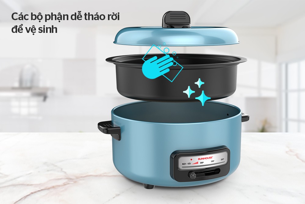 Lẩu điện Sunhouse SHD4527 - Dung tích 3.5L - Lẩu, Chiên, xào chống dính