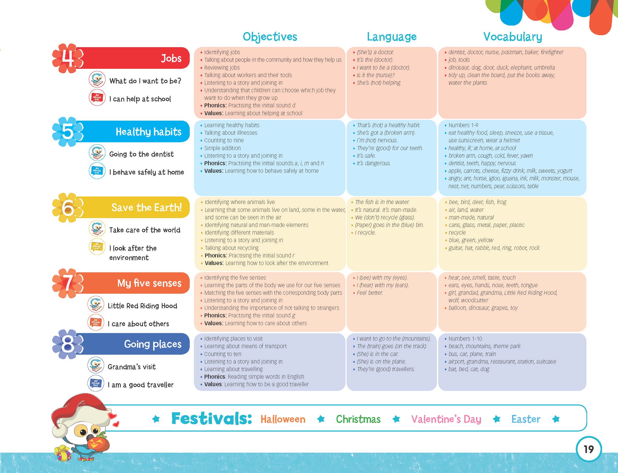 Learn with Ollie là một bộ sách mới và thú vị cung cấp cho trẻ nhỏ những kiến thức nền tảng cho việc học tiếng Anh về sau. Bộ sách tập trung phát triển ở trẻ nhỏ không chỉ về khả năng ngôn ngữ mà còn về kỹ năng xã hội, khả năng cảm thụ, thể chất và nhận thức.