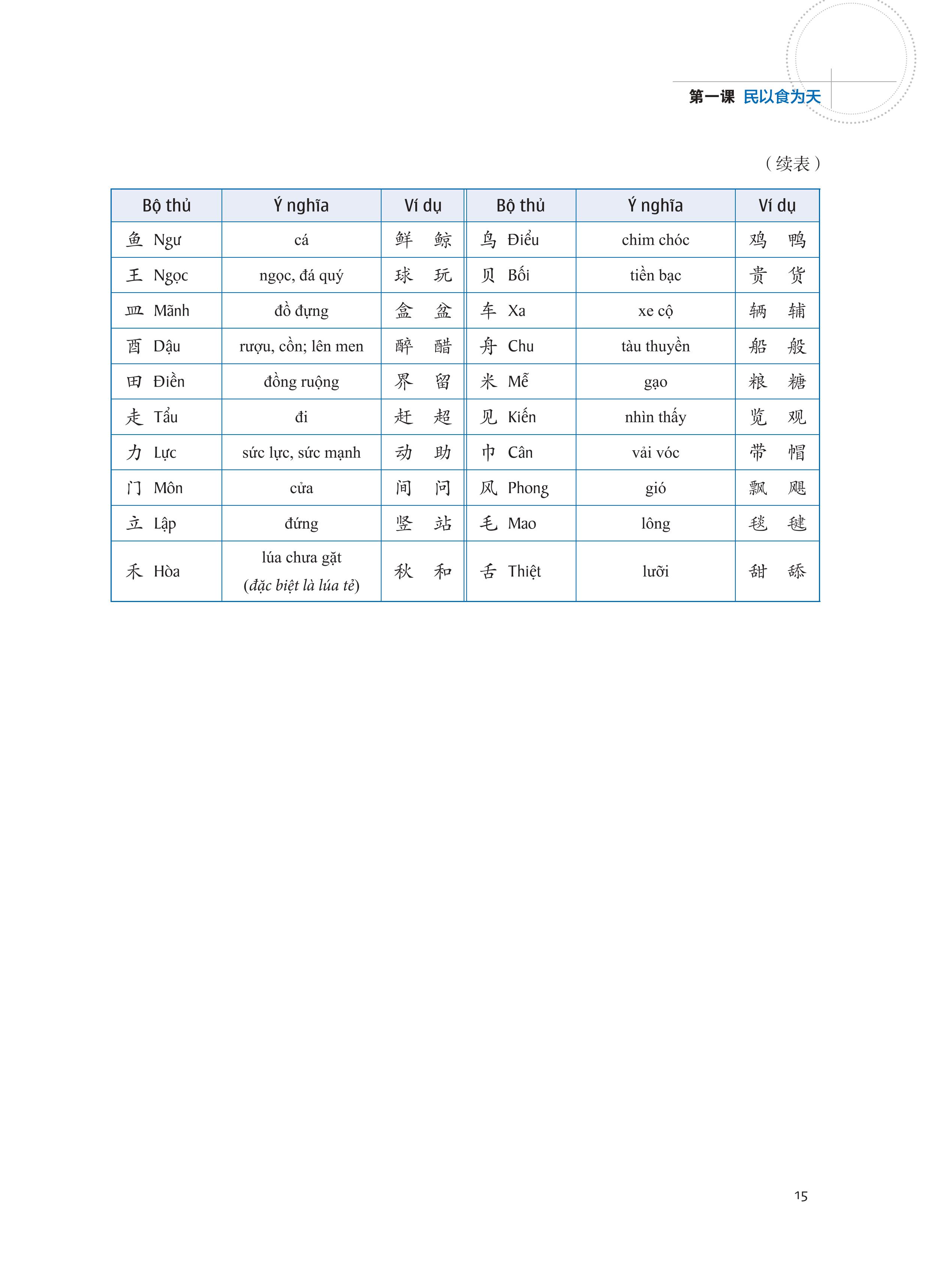 Giáo trình tiếng Trung giao tiếp tổng hợp dành cho người Việt Nam Cuốn sách có 15 bài, mỗi bài gồm: 1. Câu trọng điểm: Đưa ra trong bảng ở đầu tiên của mỗi bài,