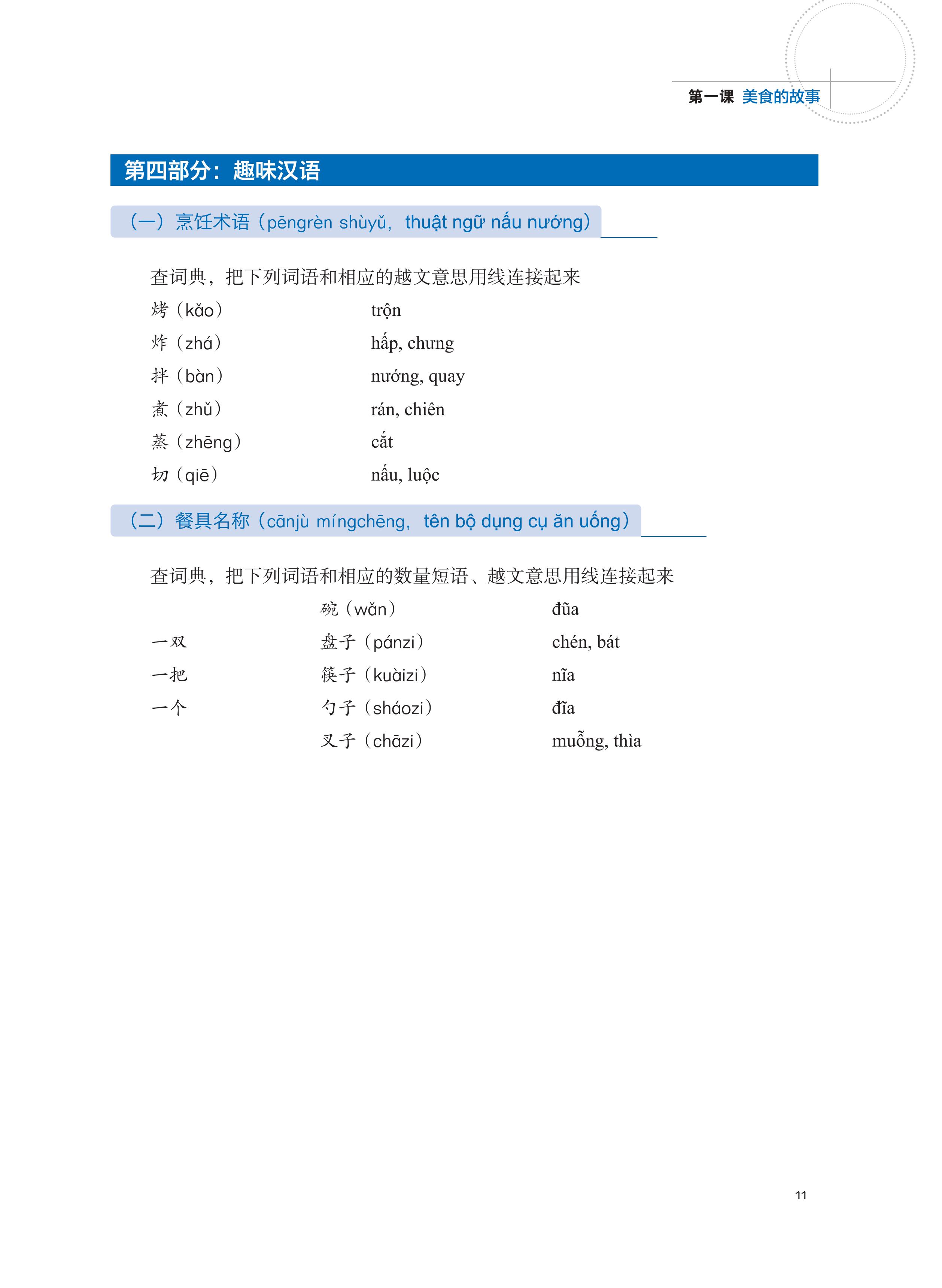 Phần 4: Hán ngữ thú vị. Bao gồm những tri thức thú vị, thục ngữ, ngữ lưu hành trên mạng, v.v., nhằm điều tiết cường độ và tiết tấu đọc, kết hợp giải trí với học tập.