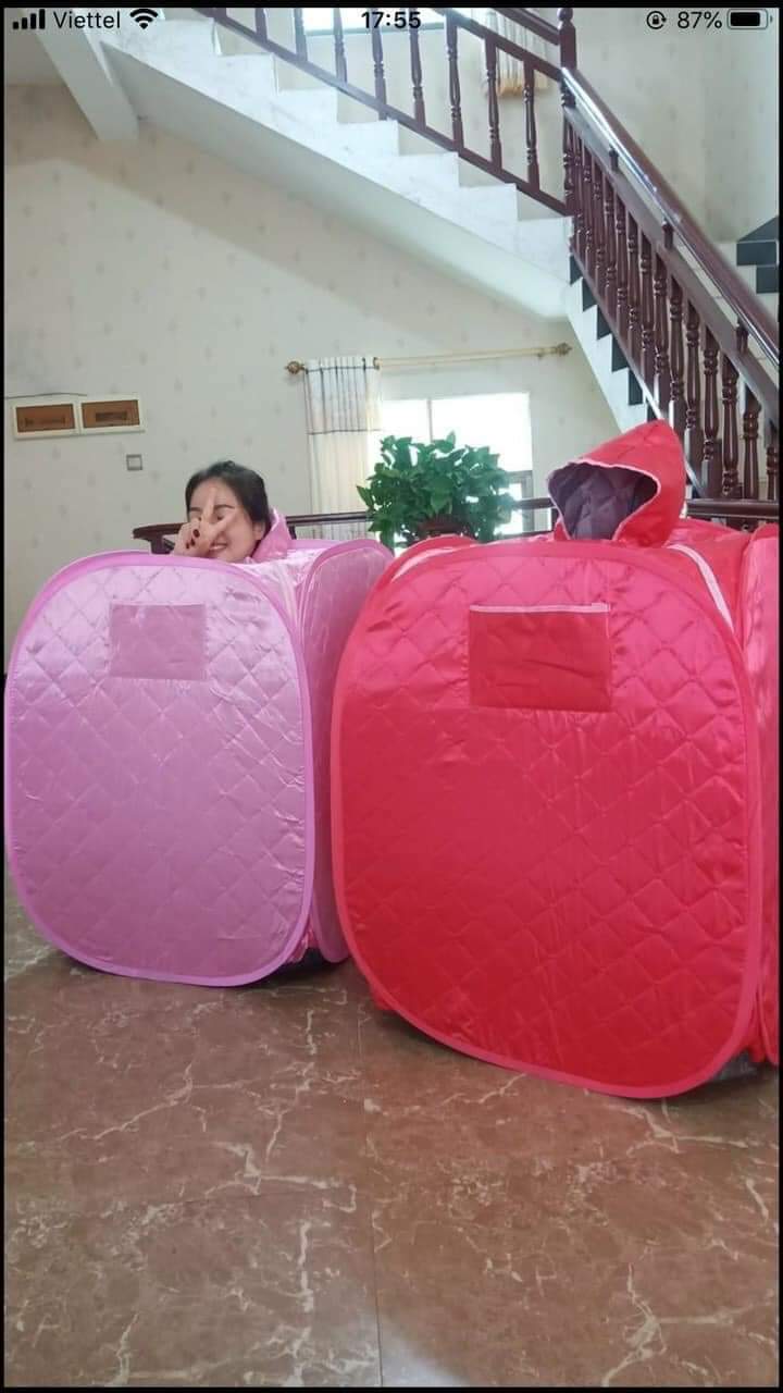 Lều xông hơi tự bung vuông vải dày 3 lớp, có mũ xông mặt màu sắc : Đỏ và Xanh ( Shop sẽ giao màu ngẫu nhiên) Hiện nay xông
