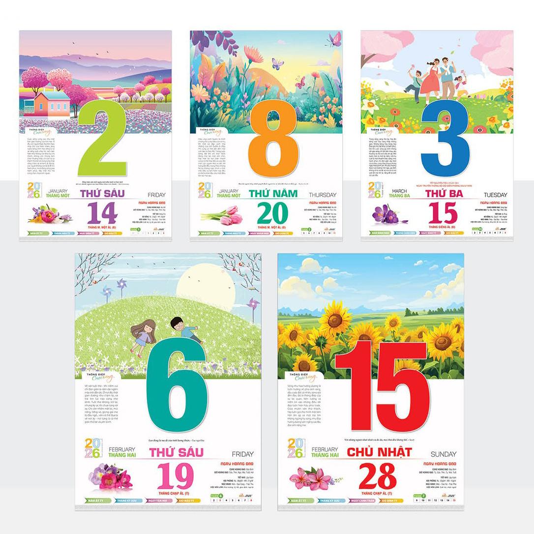 Lịch 2026 Bloc Siêu Cực Đại – Chủ Đề Thông Điệp Cuộc Sống | Lịch Tết Treo Tường Cao Cấp Vanlangbooks | FREESHIP (Mã: VL02) Lịch 2026 Bloc Siêu Cực Đại – Chủ đề Thông