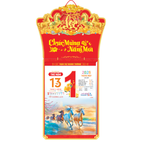 Lịch 2026 Bloc Cực Đại Rời – Mã Đáo Thành Công | Lịch Tết Treo Tường Cao Cấp Vanlangbooks | FREESHIP (Mã: VL08) Lịch 2026 Bloc Cực Đại Rời – Chủ đề Mã Đáo Thành