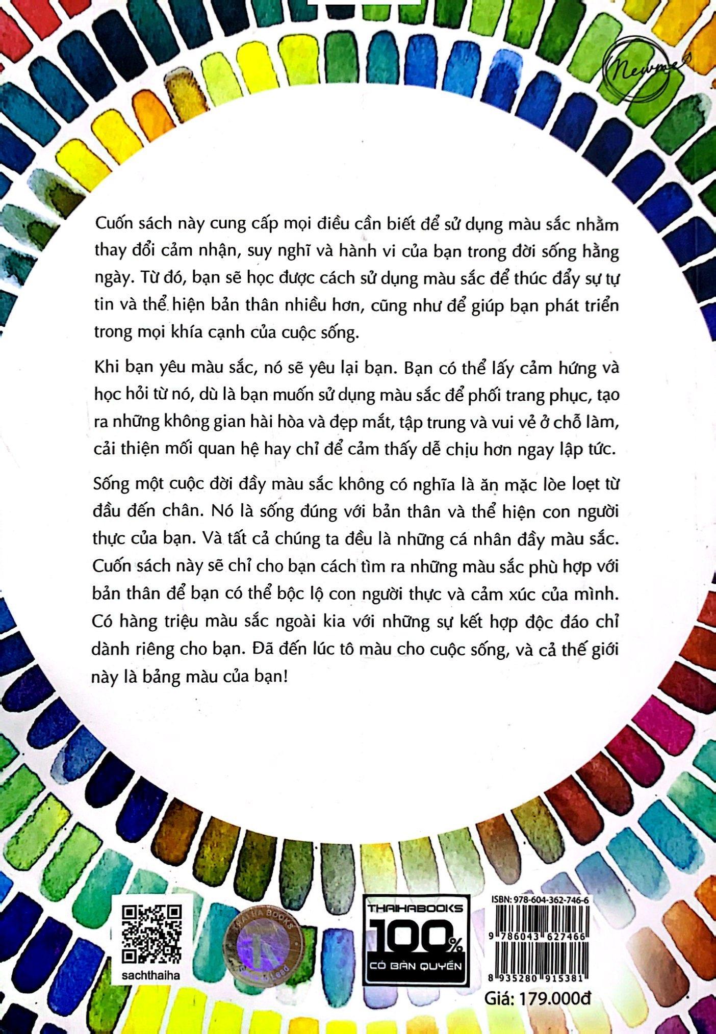 Qua cuốn sách này, bạn sẽ học được cách sử dụng màu sắc để thúc đẩy sự tự tin và thể hiện bản thân nhiều hơn, cũng như để giúp bạn phát triển trong mọi khía cạnh của cuộc sống − từ phòng ngủ cho đến phòng họp và mọi nơi khác nữa.