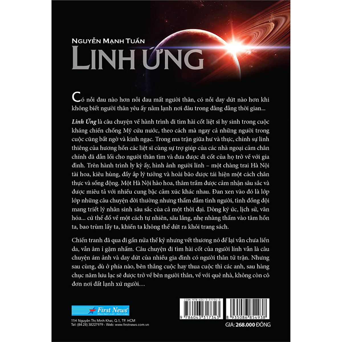 “Linh ứng” là cuốn sách kể câu chuyện có thật về hành trình của gia đình nhà văn Nguyễn Mạnh Tuấn đi tìm hài cốt liệt sĩ Nguyễn Minh Khôi - người anh trai đã hy sinh trong cuộc chiến tranh khốc liệt, với những câu chuyện ly kỳ, bí ẩn đến mức nếu không được kể lại bởi người trong cuộc, hẳn chúng ta sẽ thấy hoài nghi. Theo tác giả, đây là cuốn sách tâm huyết nhất và cũng có thể là cuốn sách sau cùng trong sự nghiệp văn chương của ông, một câu chuyện riêng tư nhưng lại bao hàm biết bao câu chuyện chung khác. Đồng thời tác phẩm cũng cung cấp những tư liệu quý giá về những nhà ngoại cảm sở hữu năng lực nằm ngoài phạm vi lý giải của khoa học. Cuốn sách cũng là minh chứng cho việc dẫu thời gian có qua đi, vết thương chiến tranh vẫn còn đó, vẫn dày vò những người ở lại. Tìm kiếm người thân thất lạc sau chiến tranh vẫn luôn là câu chuyện day dứt của biết bao gia đình. Họ đi từ hy vọng đến thất vọng, rồi lại tìm kiếm hy vọng khác trên những chặng đường mới. “Có gia đình may mắn tìm được, có người thì đến lúc chết vẫn còn dặn dò con cháu phải tiếp tục đi tìm”, tác giả Nguyễn Mạnh Tuấn chia sẻ trong cuốn sách “Linh ứng”. Trong thế giới bao la, càng biết nhiều ta lại càng nhận ra mình biết quá ít, chỉ bằng cách mở rộng niềm tin, cởi mở với những gì chưa biết, chúng ta mới có cơ hội hiểu hơn về thế giới này. Với sự hỗ trợ của Trung tâm Nghiên cứu và Ứng dụng Tiềm năng Con người, những gia đình đang đau đáu niềm mong mỏi tìm lại hài cốt thất lạc của người thân đã được kết nối với những nhà ngoại cảm chân chính, và những hành trình linh thiêng đưa những người con lưu lạc về với gia đình cũng được bắt đầu từ đó. Không chỉ đặc sắc với câu chuyện tìm mộ liệt sĩ ly kỳ, thông qua những trang kể đan xen giữa quá khứ và hiện tại, một giai đoạn lịch sử đã hiện lên vô cùng sống động và chân thực. Từng trang viết đã tái hiện một Hà Nội thâm trầm giữa biến động thời cuộc, một tuổi trẻ giàu lý tưởng, ôm ấp hoài bão cống hiến và phụng sự, những câu chuyện đời thường đầy ắp tình người, tình bạn lấp lánh, và tình đồng đội keo sơn. Hơn hết, tác phẩm đặc biệt đề cao giá trị gia đình. Nửa thế kỷ trôi qua, dù người thân đã mãi mãi chia lìa, dù giữa họ có nhiều khác biệt trong suy nghĩ, dù con đường họ chọn ngay từ đầu đã không cùng hướng, nhưng mãi mãi vẫn có một phần của “anh Khôi” sống trong những người ở lại. Với ngòi bút của một nhà văn từng đứng sau nhiều kịch bản phim truyền hình lẫn điện ảnh nổi tiếng, “Linh ứng” hiện lên như những thước phim ly kỳ, sống động mà vẫn giàu tính hiện thực, nặng trĩu những hồi ức mà vẫn nóng hổi tính thời sự. Có nhìn thấy nỗi đau quá khứ mới trân trọng bình yên của hiện tại, có nhìn thấy sự tồn tại của những cõi giới khác mới nhận thấy được vị trí khiêm tốn của con người trong thế giới bao la. “Linh ứng” chính là câu chuyện của hôm qua, hôm nay và cả ngày sau. Về tác giả Nhà văn, đồng thời là nhà biên kịch Nguyễn Mạnh Tuấn sinh năm 1945. Ông là tác giả của các cuốn tiểu thuyết nổi tiếng, đã tạo tiếng vang lớn trên văn đàn và trong đời sống xã hội, như Những Khoảng Cách Còn Lại (1980), Đứng Trước Biển (1982), Cù Lao Tràm (1984). Những tác phẩm của ông nâng số phận con người và bối cảnh xã hội lên thành vấn đề con người và xã hội. Từ khoảng năm 2000 trở đi, sự nổi tiếng này có phần lắng xuống khi ông chuyển sang lĩnh vực sân khấu và điện ảnh. Trong lĩnh vực này, tên tuổi Nguyễn Mạnh Tuấn cũng để lại dấu ấn với các kịch bản phim điện ảnh: Biển sáng, Xa và gần, Cơn lốc đen, Lưới trời, Sinh mệnh, Lối rẽ trái trên đường mòn, Tử hình, và gần đây nhất là Hợp đồng bán mình (2020).