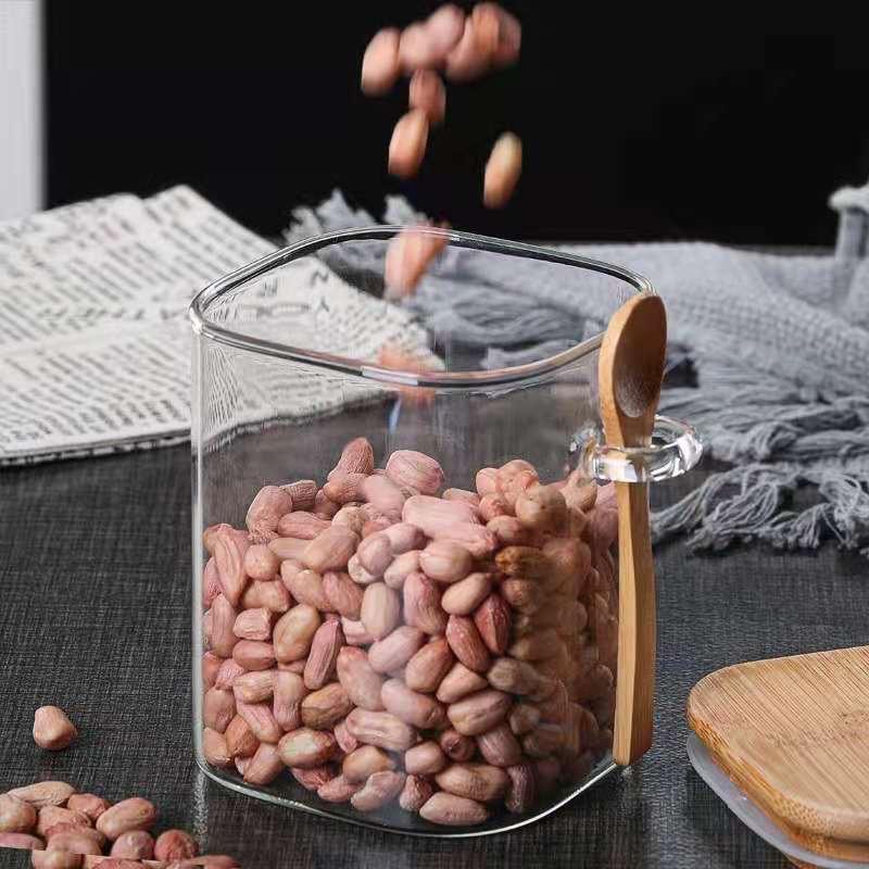 Lọ Đựng Gia Vị Thuỷ Tinh Có Tay Cầm + Kèm Thìa