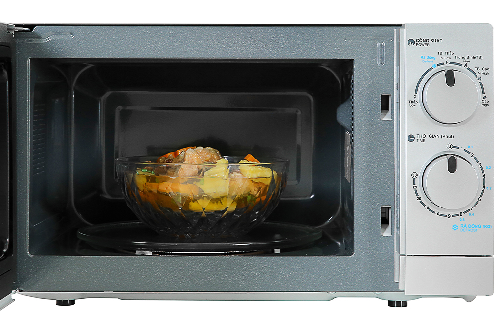 Tính năng nổi bật : – Bảng điều khiển cơ học dễ dàng sử dụng – Thiết kế sang trọng hiện đại.   THÔNG SỐ KỸ THUẬT Điện Áp 220v-50hz Đường Kính Đĩa 24,4cm Trọng lượng khoảng 10,3 kg Công Suất Đầu Ra (vi sóng) 700W Công Suất Đầu Vào(vi sóng) 1100W Kích thước bề ngoài (cm) 47 x 38 x 28.5 Dung Tích Lò Vi Sóng 20L