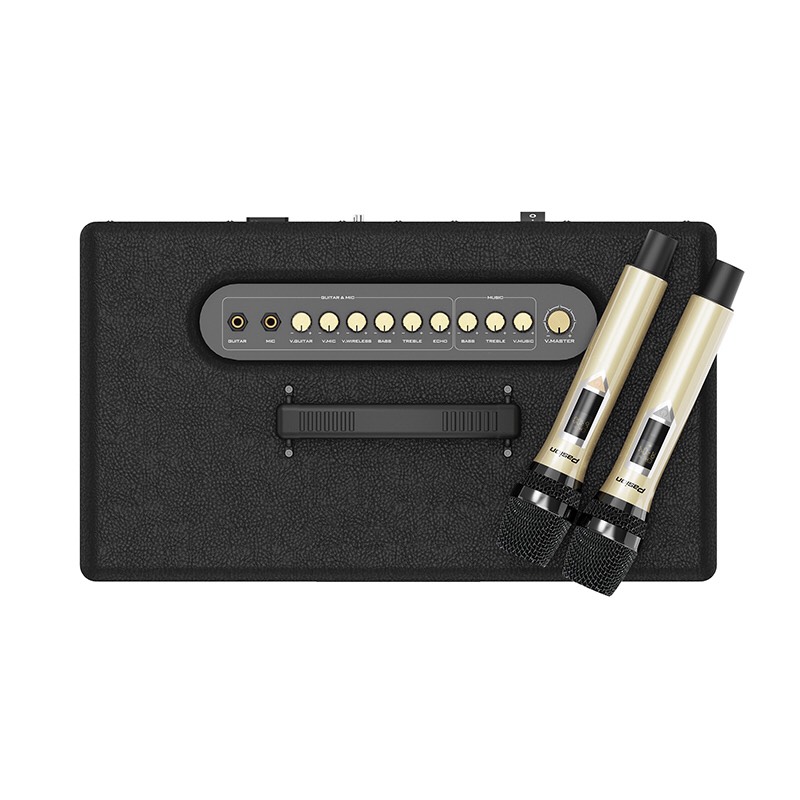 _Nguồn DC 12V bat in, AC _Hỗ trợ USB, SD CARD, Bluetooth, guitar in, mic in _Bass loa ≈40cm X 2, Treble x 1 _Phụ kiện 2 mic cầm tay không dây, dây nguồn _Công