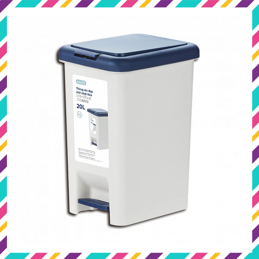 ✨[Loại Kèm Ruột] Thùng rác đạp chữ nhật Hiro 20L (Tặng kèm sticker)- Chính hãng INOCHI