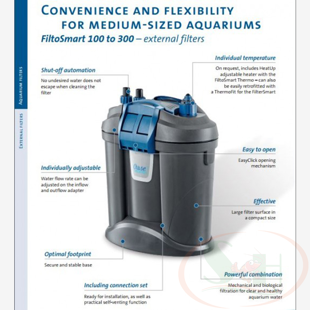Lọc thùng mini Oase FiltoSmart 60 / 100 / 200 / 300 được sản xuất tại Ý, hỗ trợ bởi kỹ thuật của Đức giúp cả bộ lọc được chứng nhận UL danh giá bậc nhất thế giới. Thiết kế cao cấp hiện đại, nhỏ gọn dành cho bể cá nước ngọt và nước mặn từ nhỏ đến trung bình