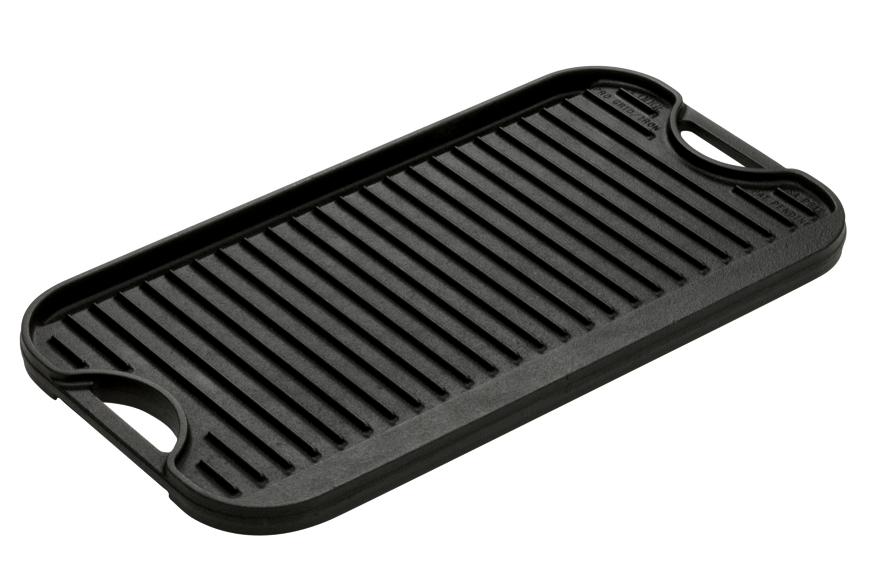 Khay gang nướng đa năng Lodge chất liệu gang bền, cứng, dẫn nhiệt và truyền nhiệt tốt giúp các món nướng chín đều và chín nhanh. Khay gang nướng thiết kế hai mặt khác nhau, mặt phẳng và mặt có vân nướng.