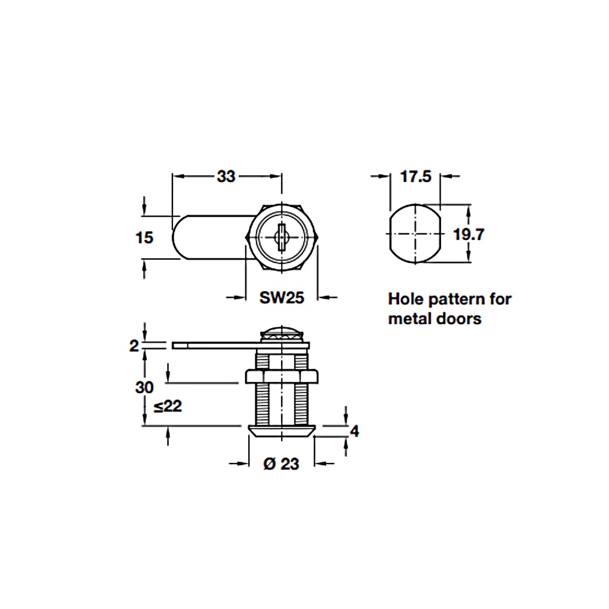 - Lắp đặt: sử dụng ốc lục giác với vít vặn (lỗ 19,7 x 17,5 mm)