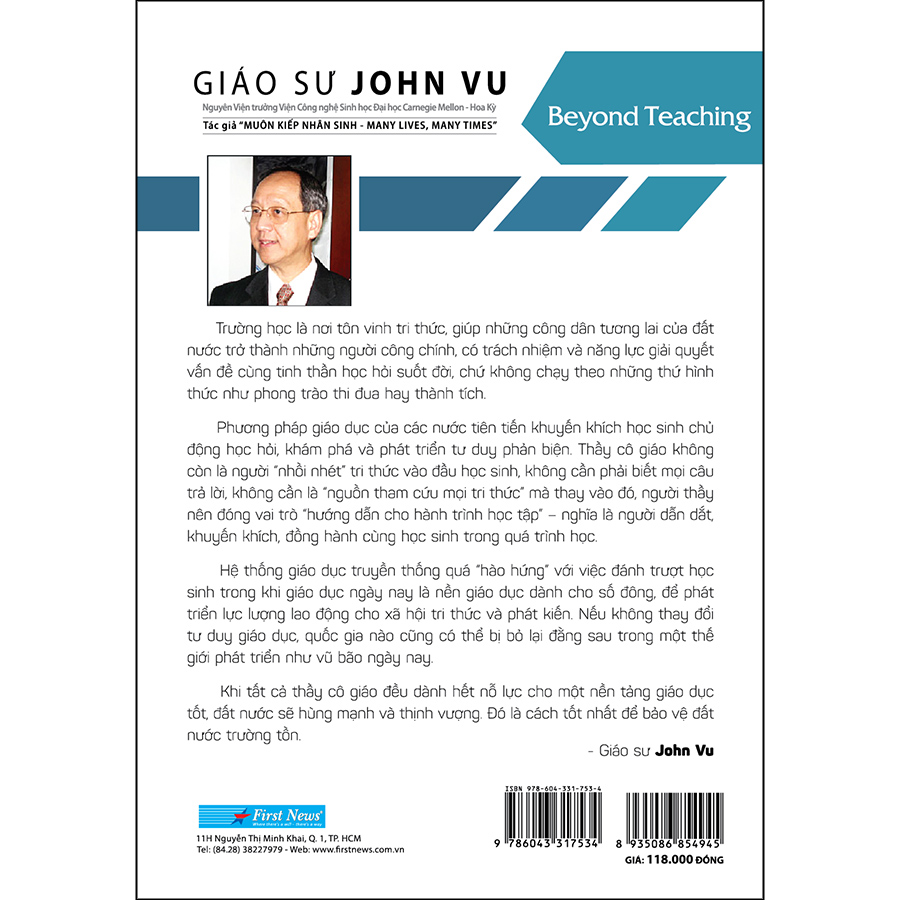 Trong tám chương sách, GS John Vu chia sẻ góc nhìn mới về giáo dục và nghề dạy học, những phương pháp giảng dạy hiệu quả nhằm giúp học sinh, sinh viên phát triển tinh thần tự học, kinh nghiệm giải quyết vấn đề. Ông cũng hướng dẫn cách làm thế nào để giúp học sinh, sinh viên phát triển tư duy khoa học cũng như những kỹ năng cần thiết trong thời đại công nghệ. Ngoài ra, cuốn sách này còn giúp các thầy cô giáo mở rộng tầm nhìn ra thế giới, ý thức được những xu hướng thay đổi mang tính toàn cầu, từ đó có những phương pháp giảng dạy và lời khuyên phù hợp nhất cho học sinh, sinh viên của mình.