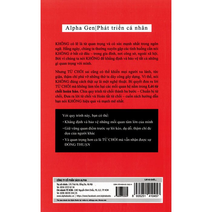 Bí quyết đưa ra lời Từ chối mà không làm tổn hại các mối quan hệ nằm trong Lời từ chối hoàn hảo. Chia quy trình Từ chối thành ba bước - Chuẩn bị từ chối, đưa ra từ chối và hoàn tất từ chối - cuốn sách hướng dẫn bạn phương pháp nói Không hiệu quả, mạnh mẽ nhất.