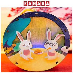✨Lồng Đèn Trung Thu Gỗ Mộc Màu : Thỏ Tròn - Bách Mộc 08 (Có Kèm Pin)