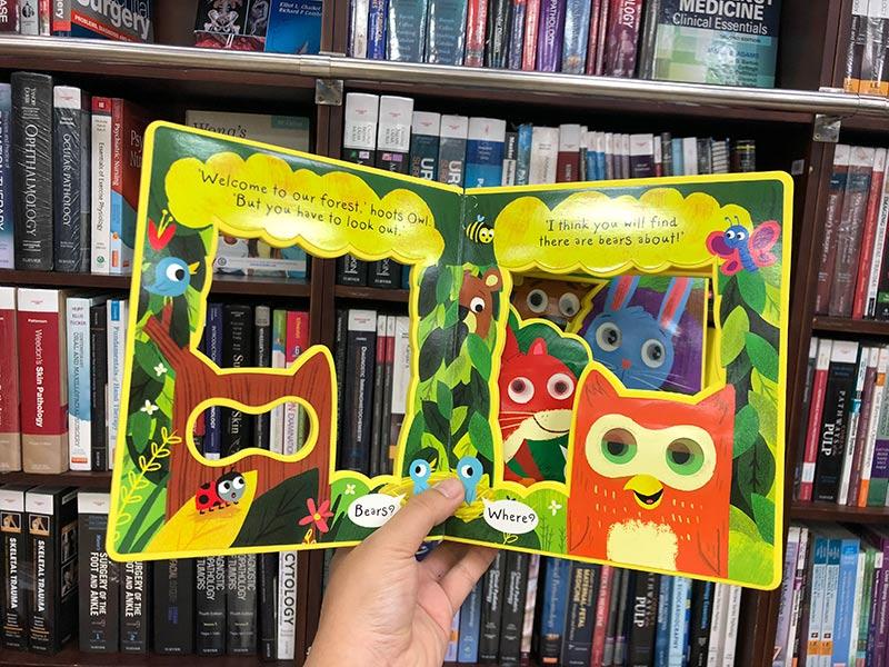 Mua tại TiktokWelcome to the forest says owl, but look out for the bears, can you see them? Children will love these soft foam books, with jiggly eyes.