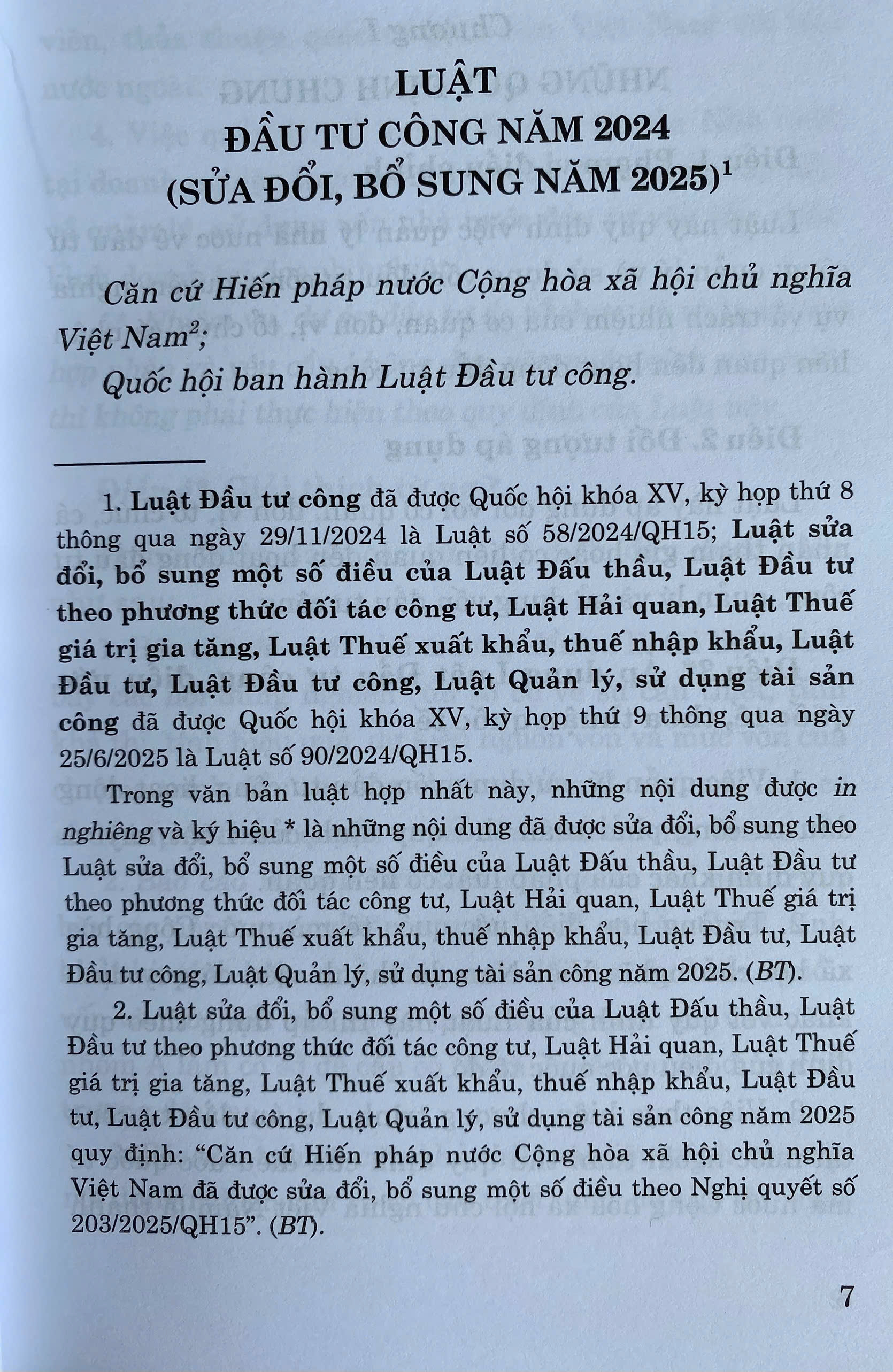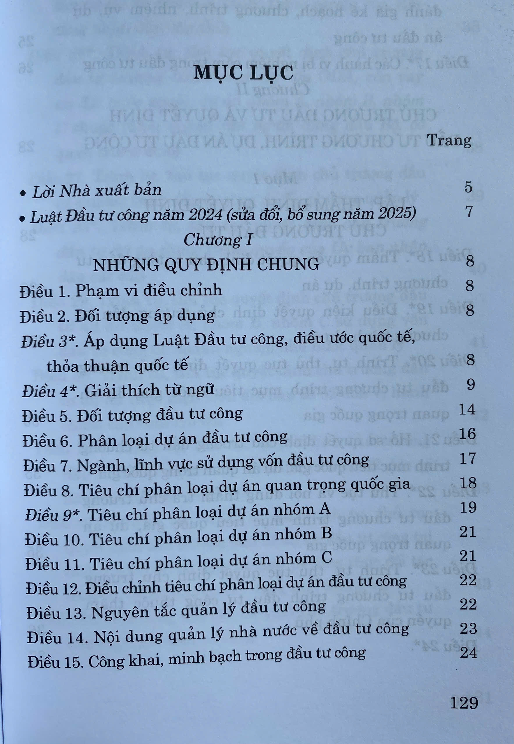 Nội dung cuốn sách là văn bản được hợp nhất giữa Luật Đầu tư công năm 2024 và các nội dung được sửa đổi, bổ sung của Luật năm 2025.