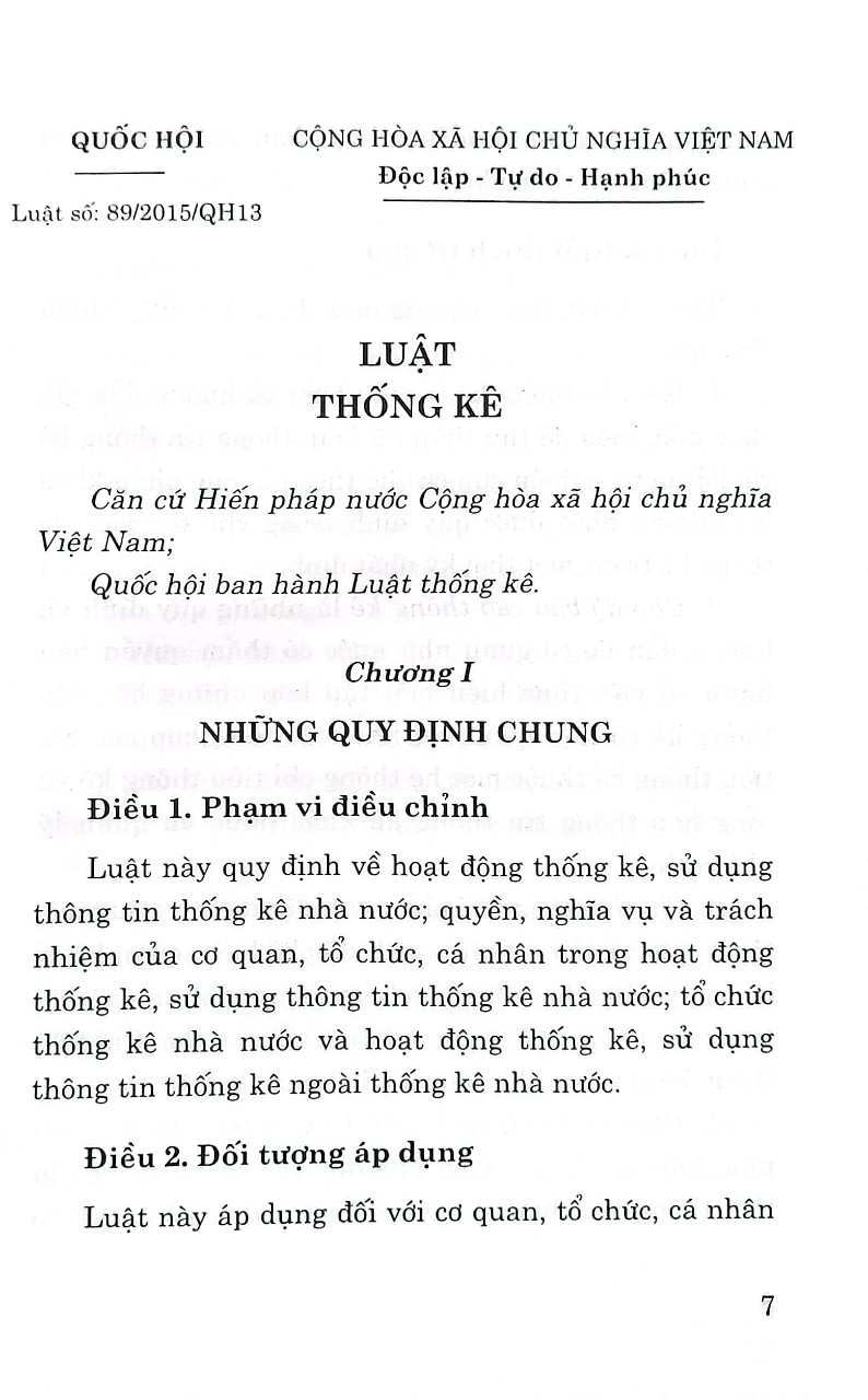 Luật thống kê năm 2015 đổi mới về kết cấu và nội dung so với Luật thống kê năm 2003, gồm 9 chương, 72 điều và 01 phụ lục về Danh mục chỉ tiêu thống kê quốc gia (tăng 01 chương, 30 điều).