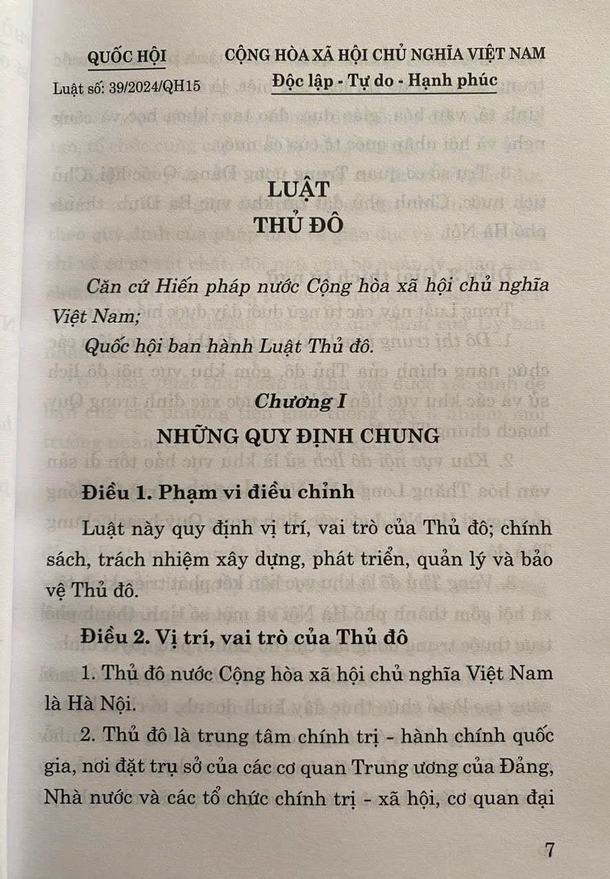 Mua tại TiktokLuật Thủ Đô số 39/2024/QH15 đã được Quốc Hội khoá XV thông qua ngày 28-06-2024. Luật gồm có 7 chương, 54 điều . Luật có hiệu lực áp dụng từ ngày 01-01-2025