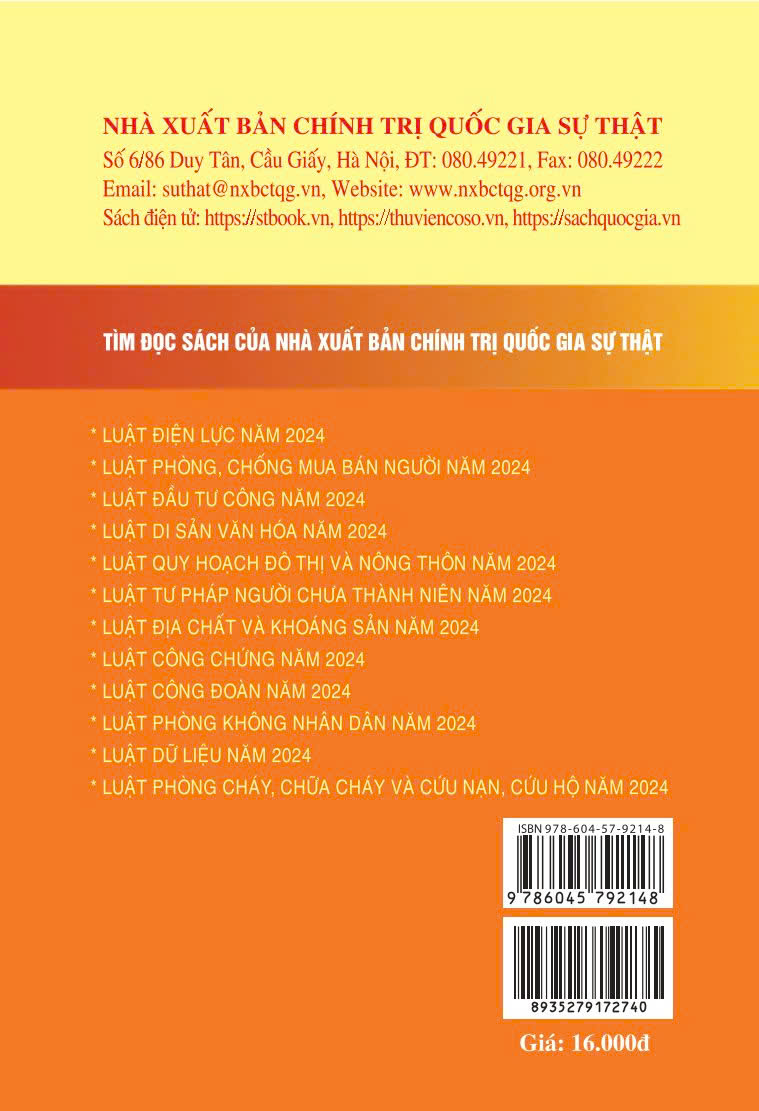 Nhằm đáp ứng nhu cầu của bạn đọc trong việc nghiên cứu, tìm hiểu, áp dụng pháp luật một cách thuận tiện, đầy đủ và thống nhất, Nhà xuất bản Chính trị quốc gia Sự