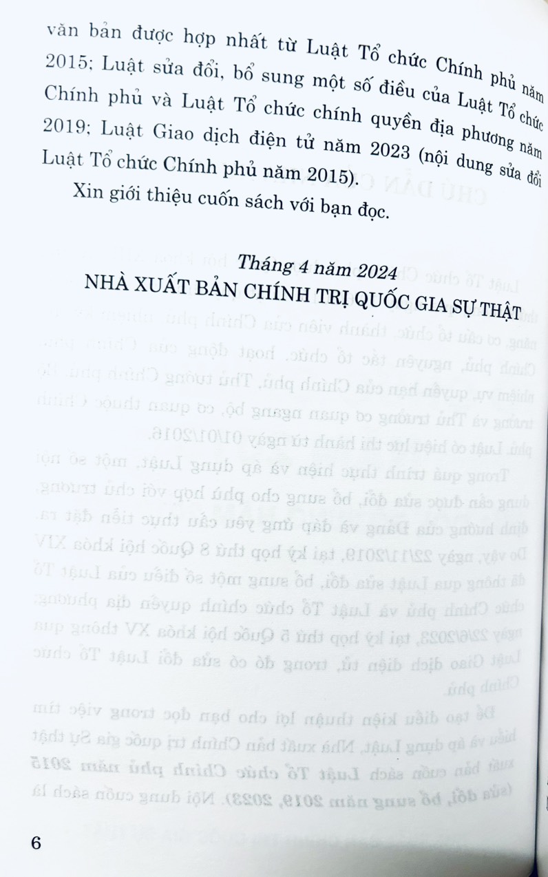 Bản in mới nhất của sách được cập nhật vào năm 2024, với sự thay đổi và cập nhật từ các phiên bản trước đó. Sách này cung cấp cho bạn các văn bản và điều lệ liên quan đến tổ chức của chính phủ Việt Nam.