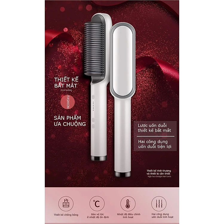 ✨Lược Điện Chải Tóc, Công Suất 45W, Giúp Tóc Bồng Bềnh, Óng Mượt; Làm Xoăn, Duỗi Thẳng Dễ Dàng, Có Đèn Cảnh Báo Nhiệt Độ, Tăng Giảm Nhiệt Độ Dễ Dàng- Hàng Chính Hãng