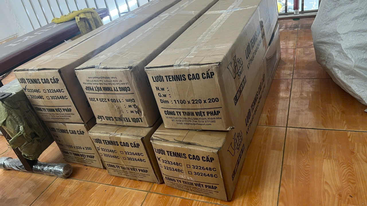 Kích thước lưới: 12.7 x 1.07m. Dài 12.7m, cao 2 đầu 1.07m có túi chứa cọc căng lưới và cao giữa lưới 0.914m.